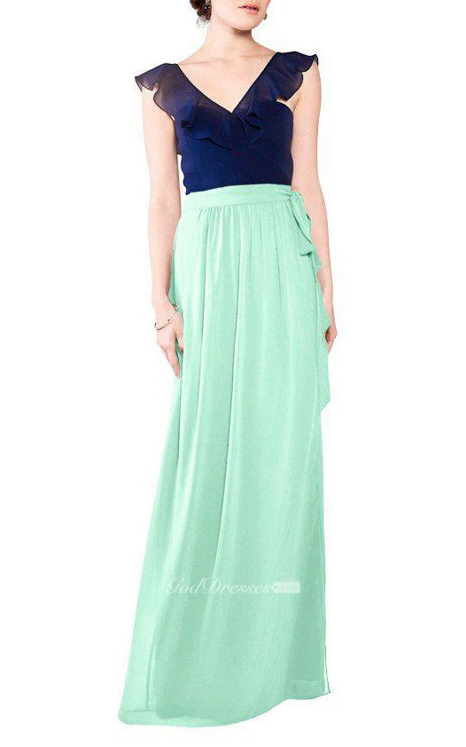 Falbala V-neck Chiffon Long Bridesmaid Dress