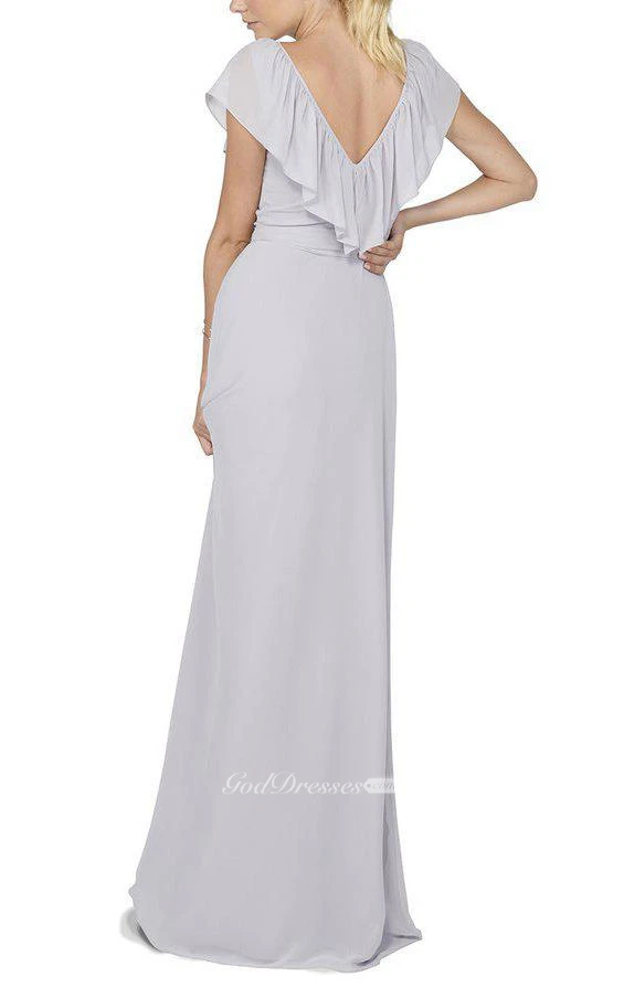 Falbala Wrap Chiffon Bridesmaid Dress with Front Split