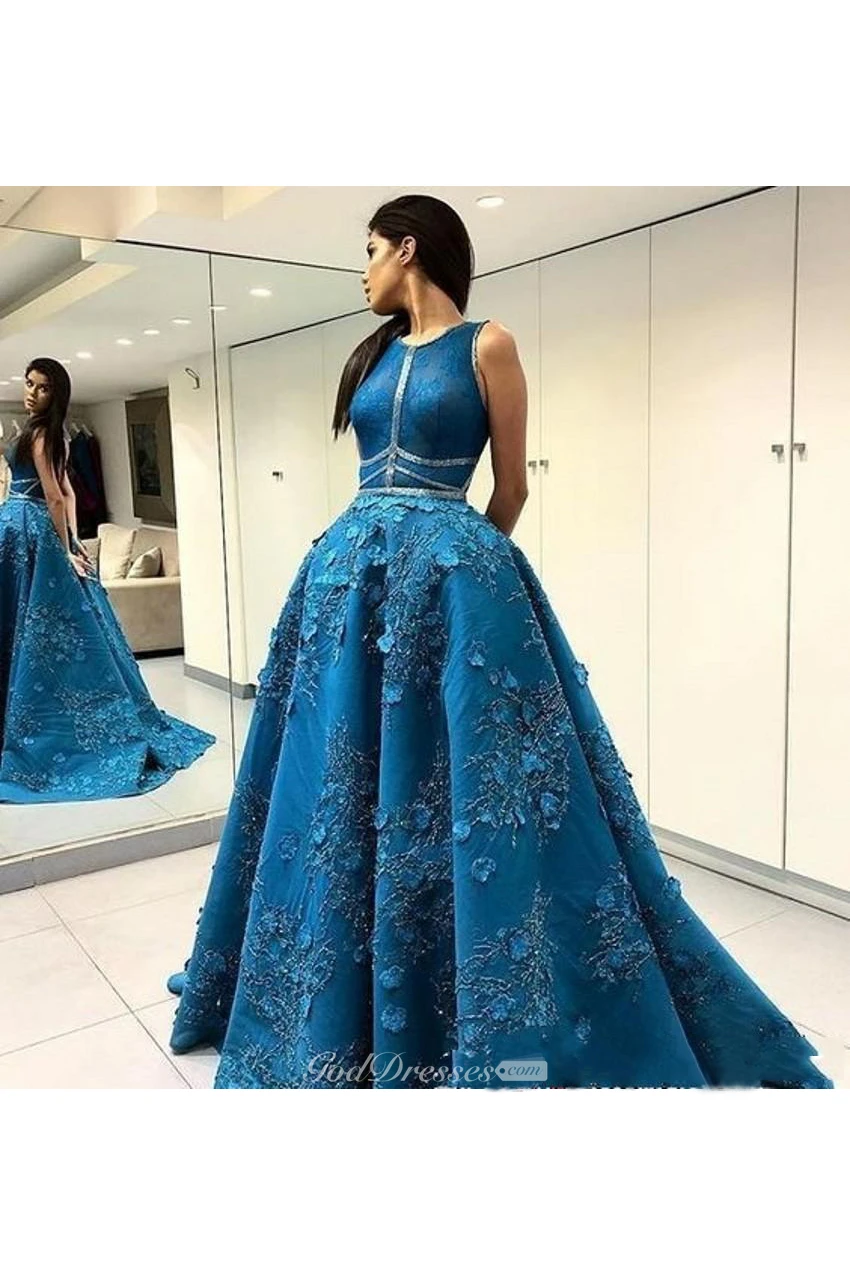 Fancy Appliques A-Line Scoop Neck Floor-length Prom Dress With Brush Train