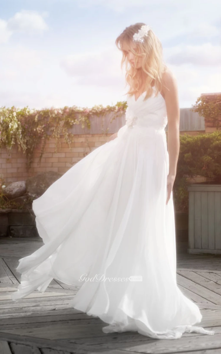 Fantastic Spaghetti Strap A-line Dress With Jeweled Flower