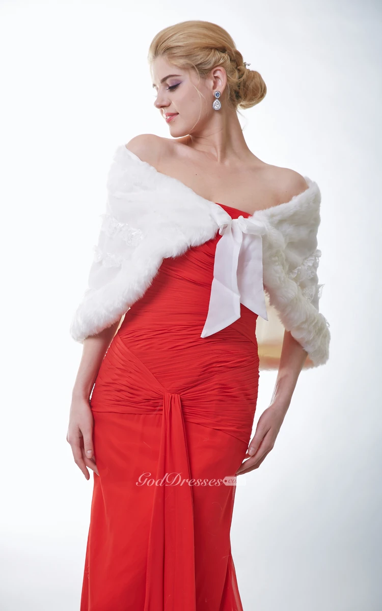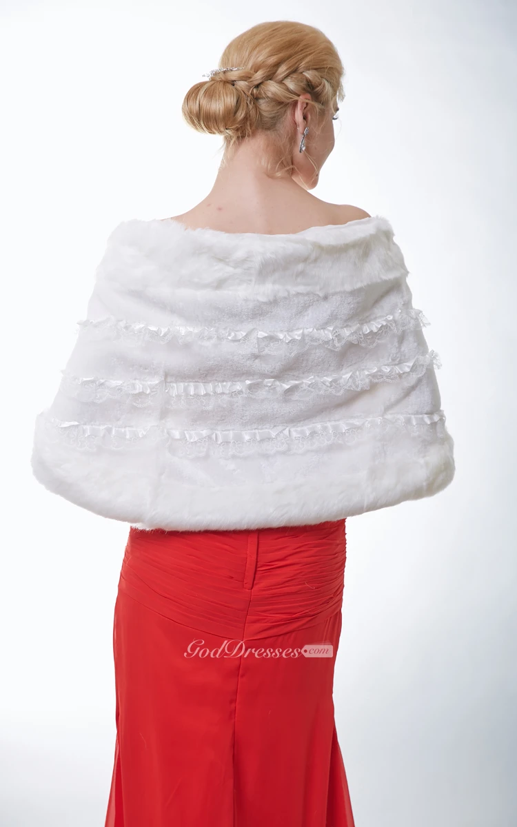 Faux Fur Bridal Cape With Lace Embellishment And Satin Bow