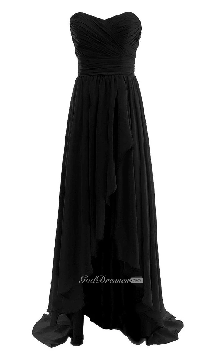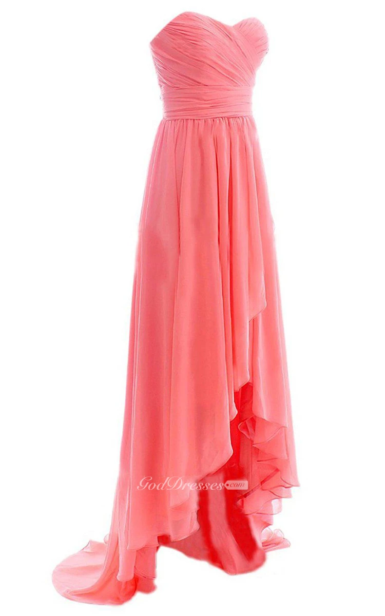 Feminine High-low Ruched Chiffon Dress With Gathered Waist