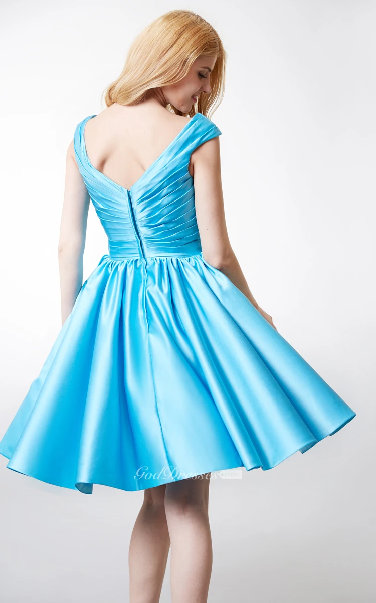Feminine Off the Shoulder Ruched Short Satin Dress With Flowers