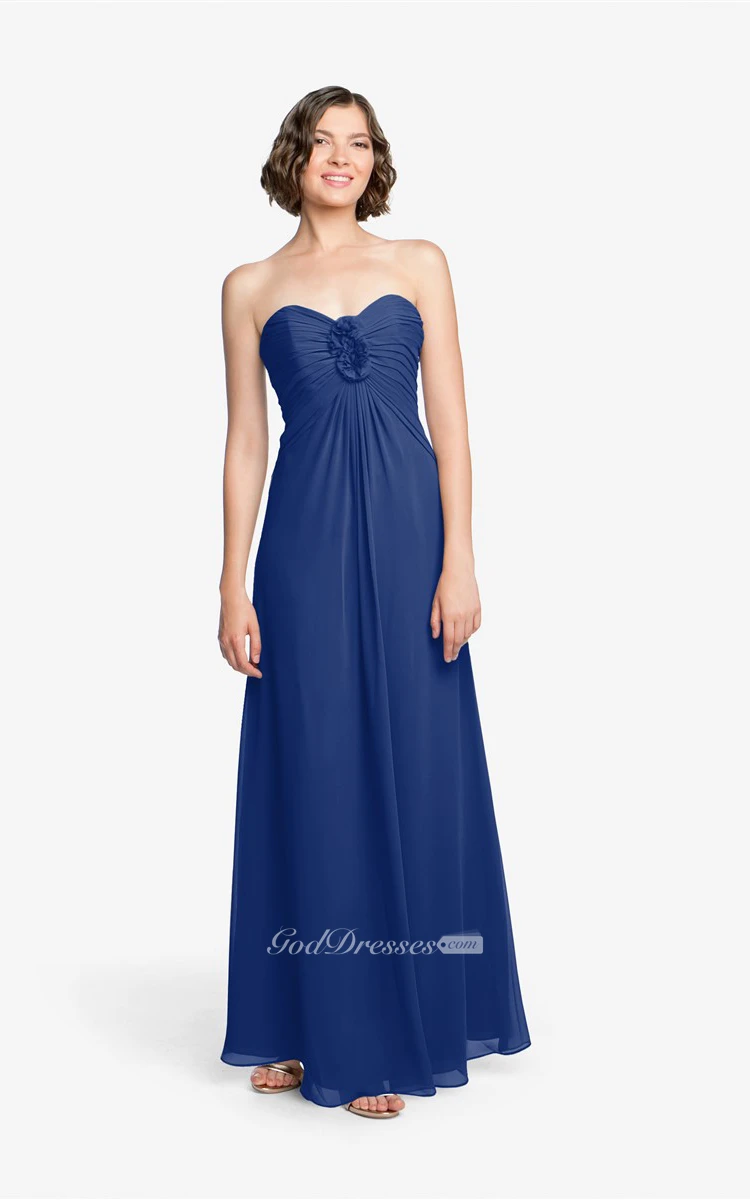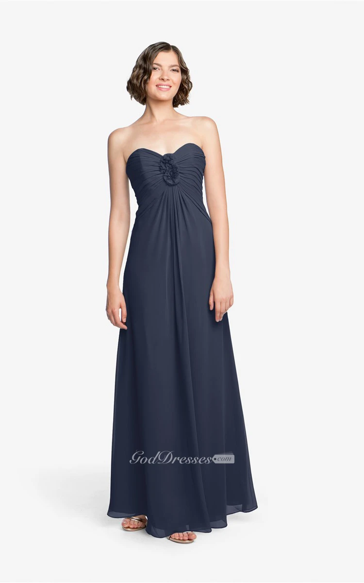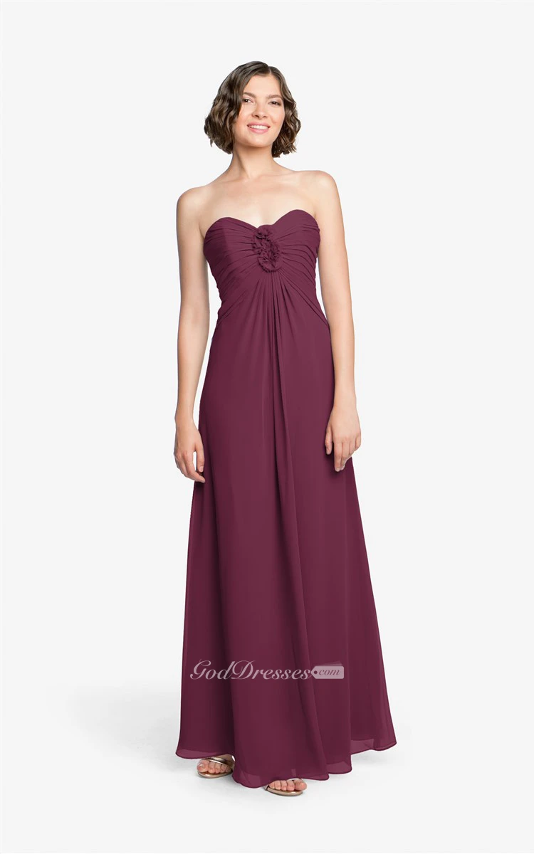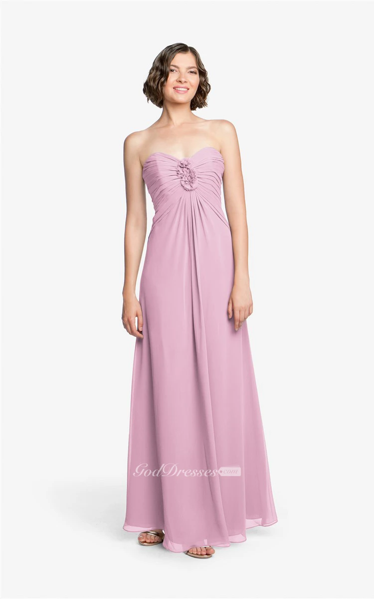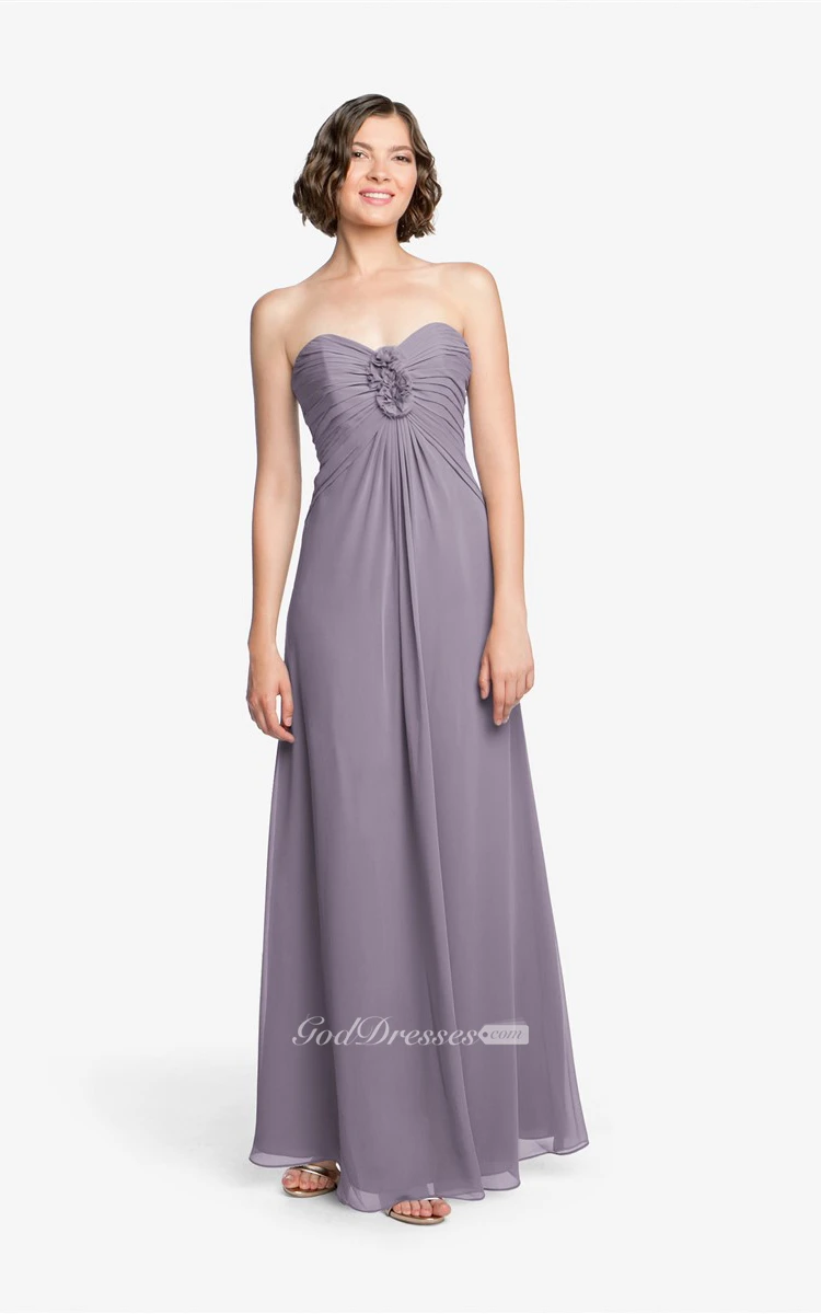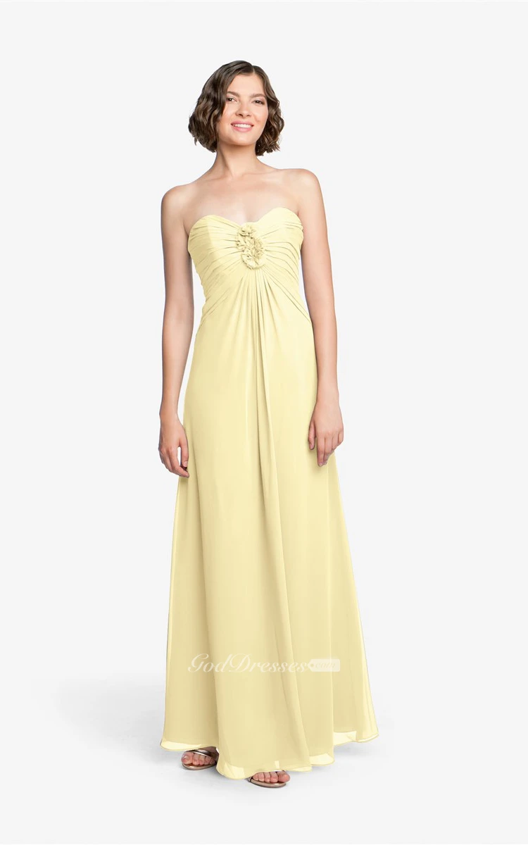 Feminine Strapless Ruched Floor-length Chiffon Dress with Empire Waist