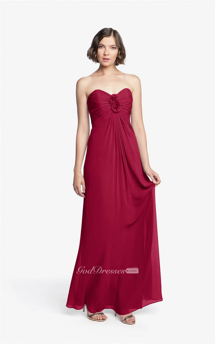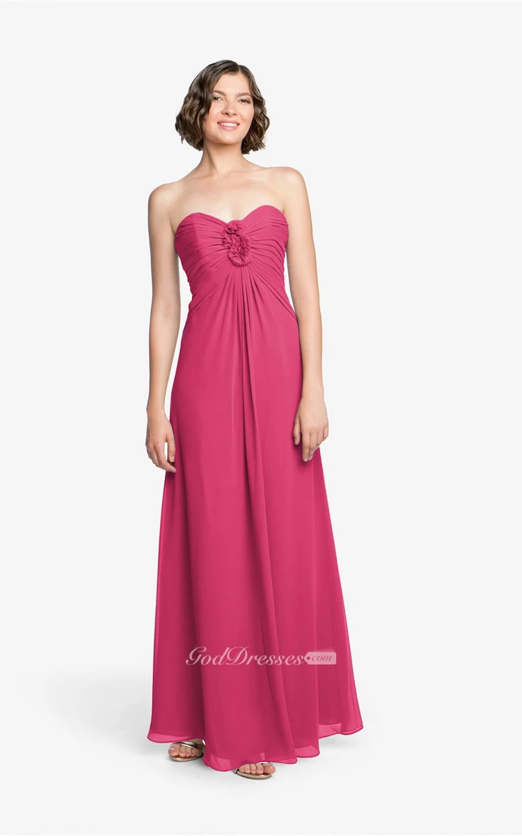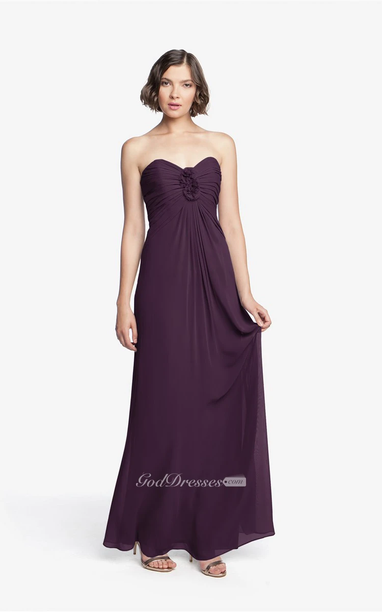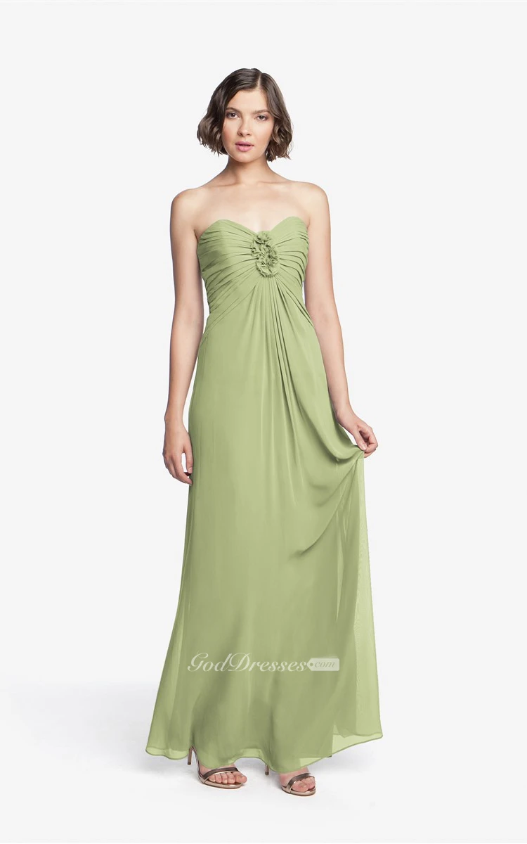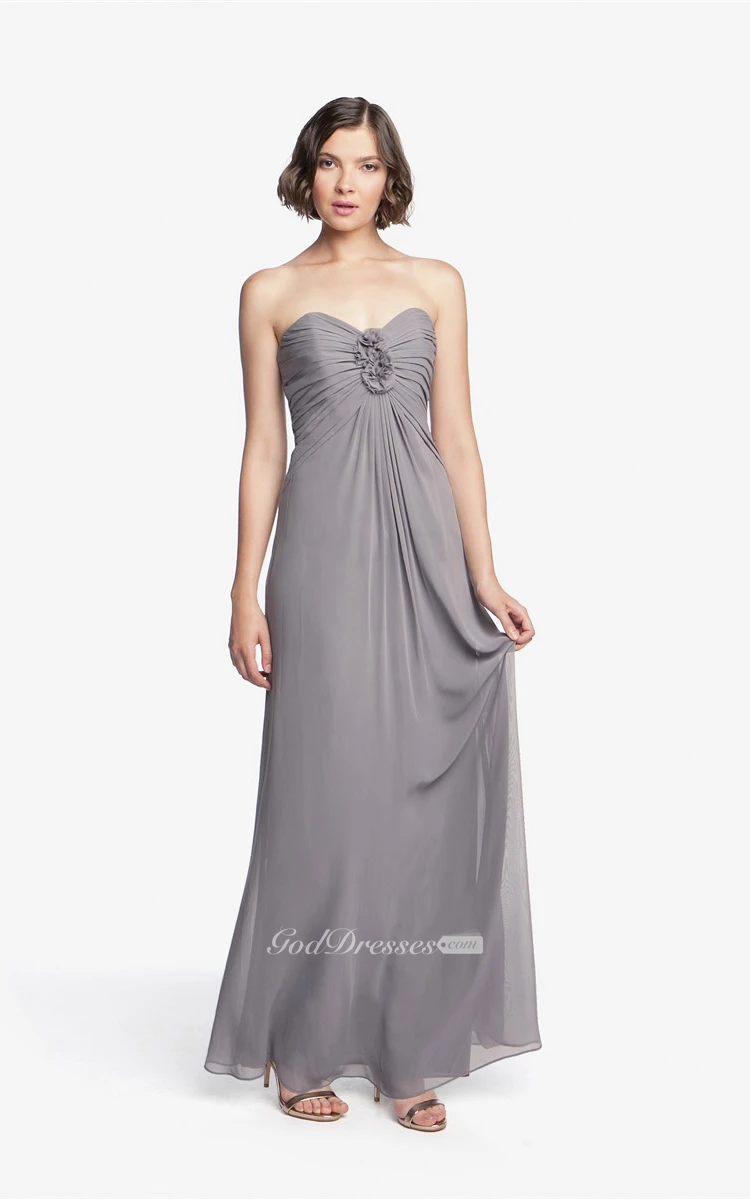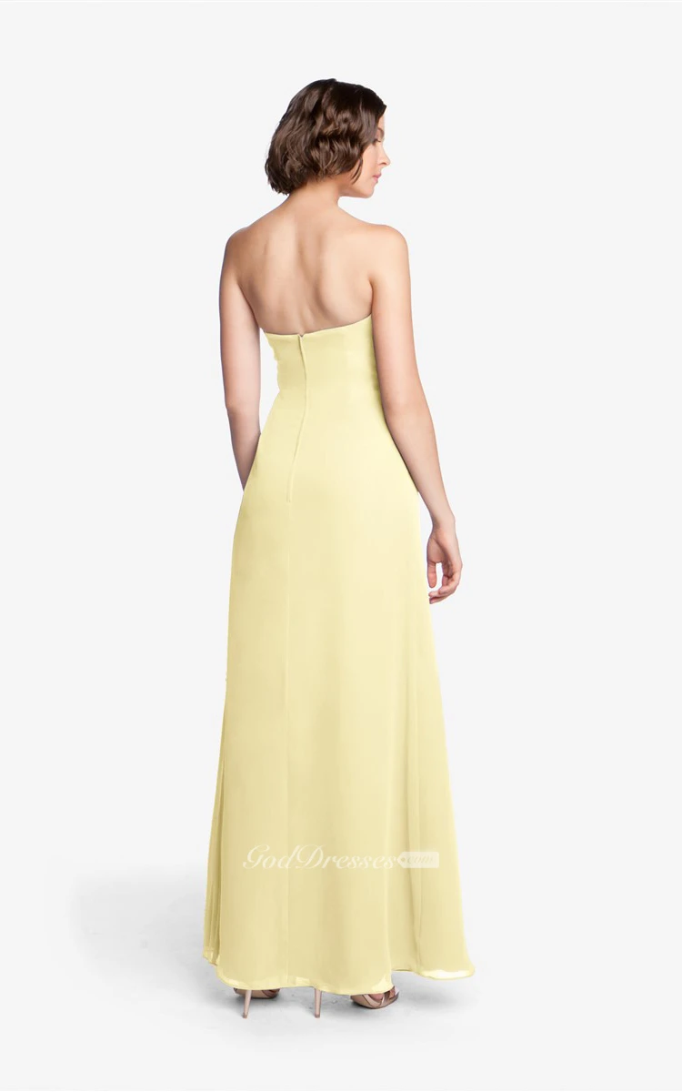 Feminine Strapless Ruched Floor-length Chiffon Dress with Empire Waist