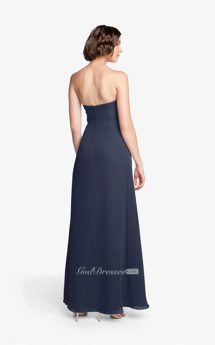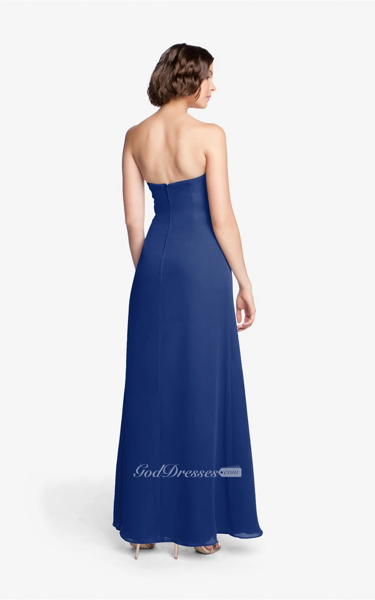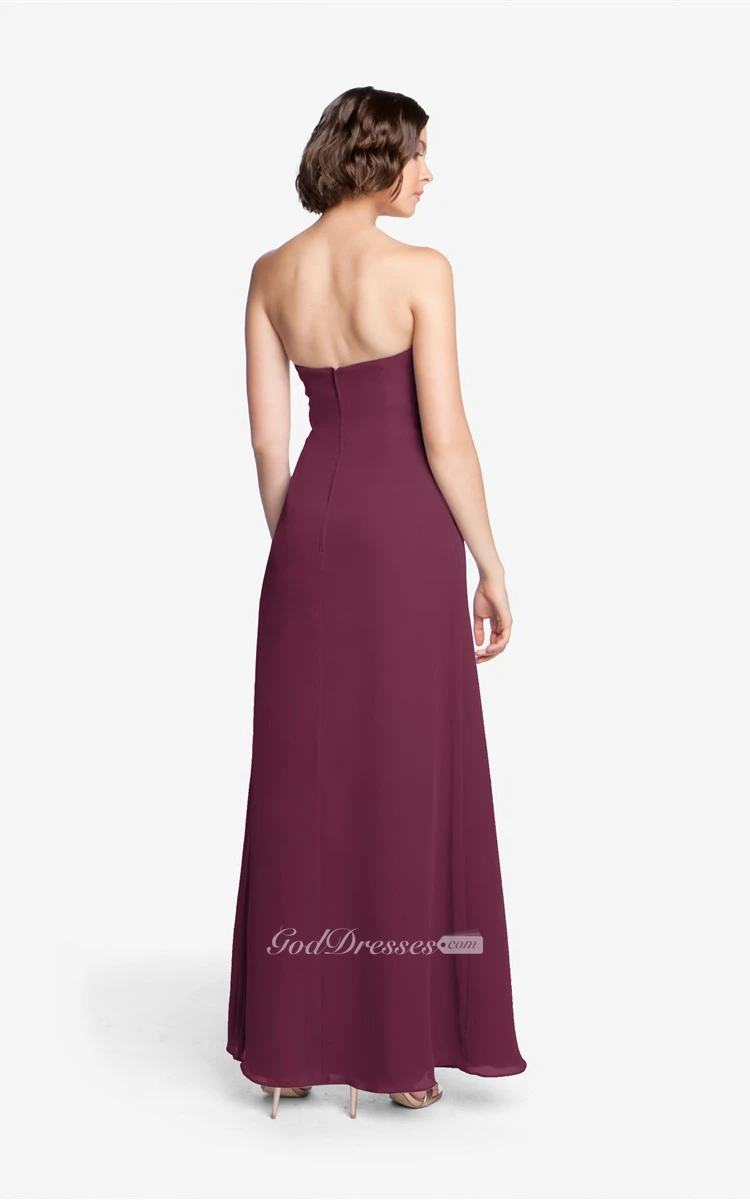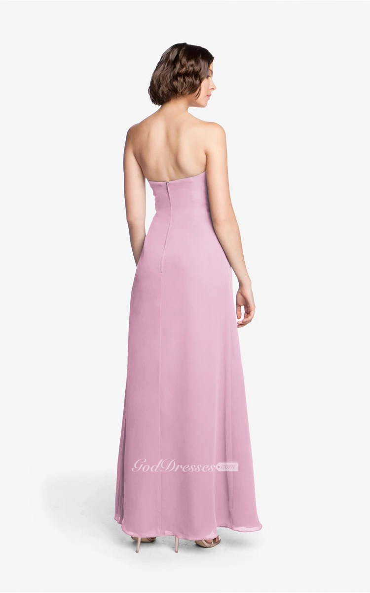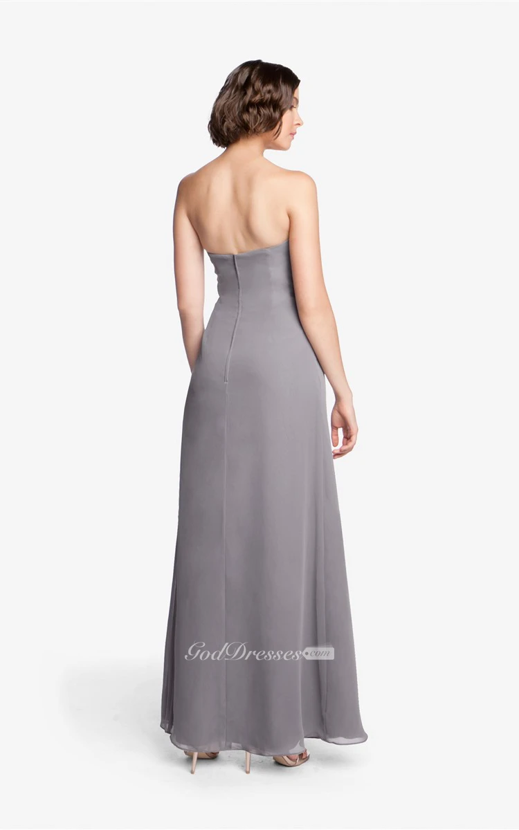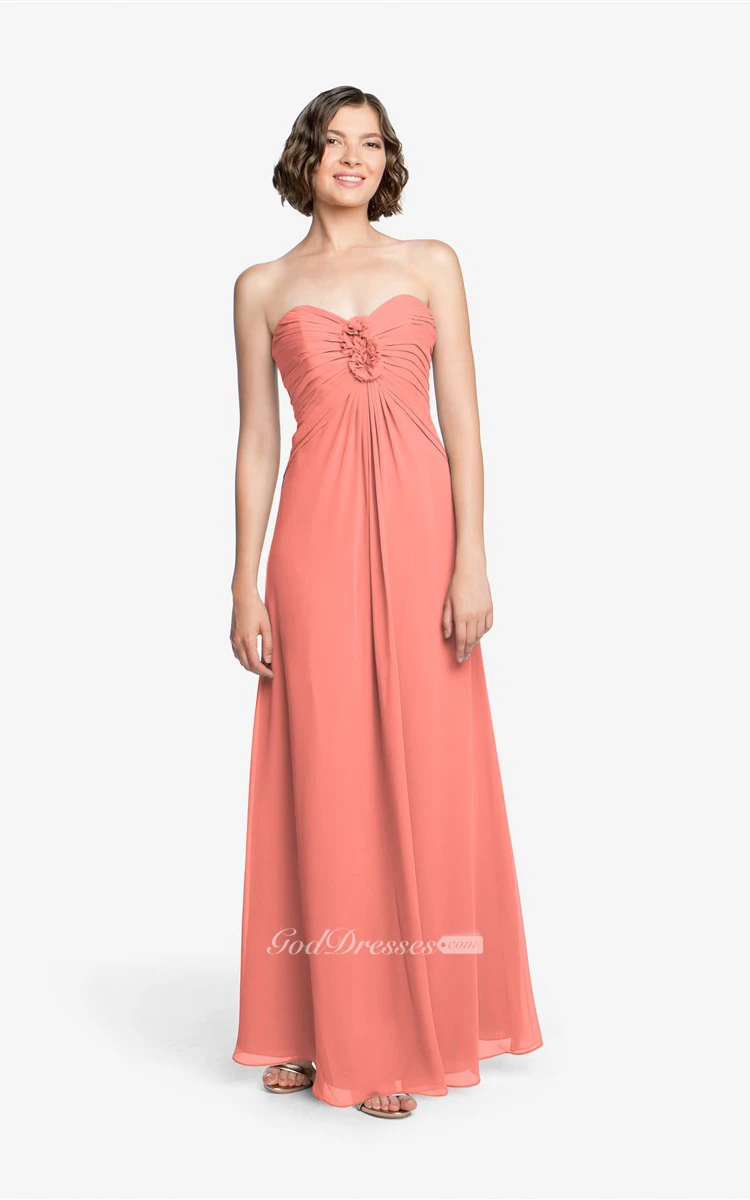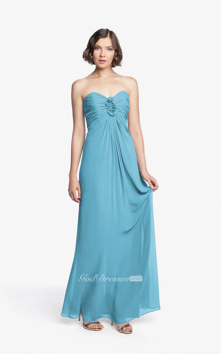 Feminine Strapless Ruched Floor-length Chiffon Dress with Empire Waist