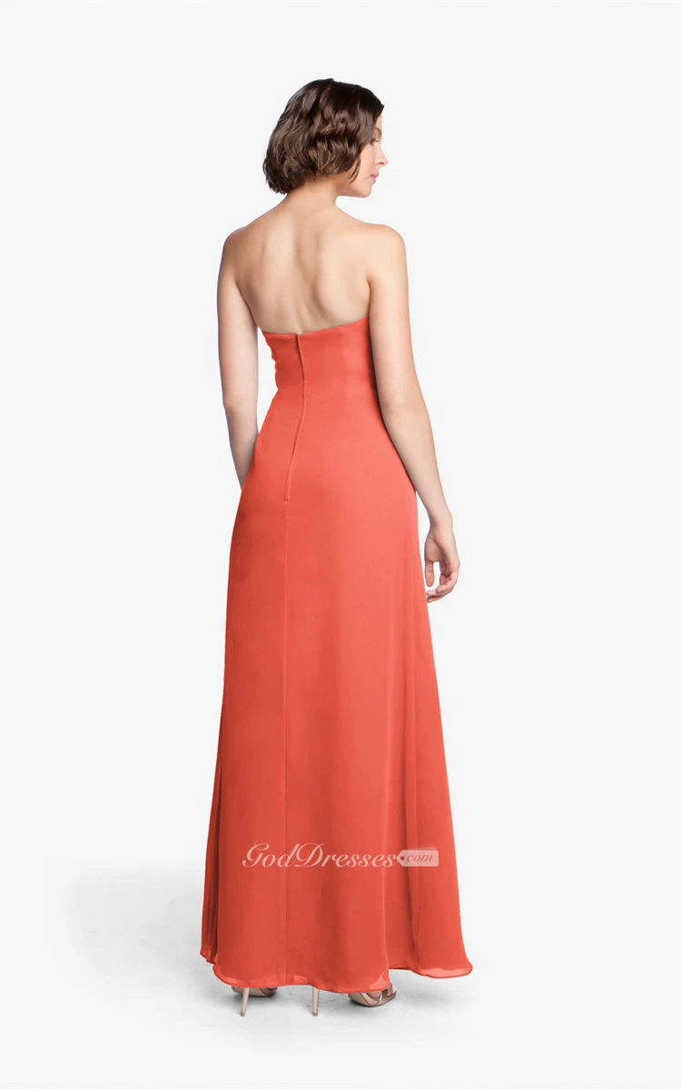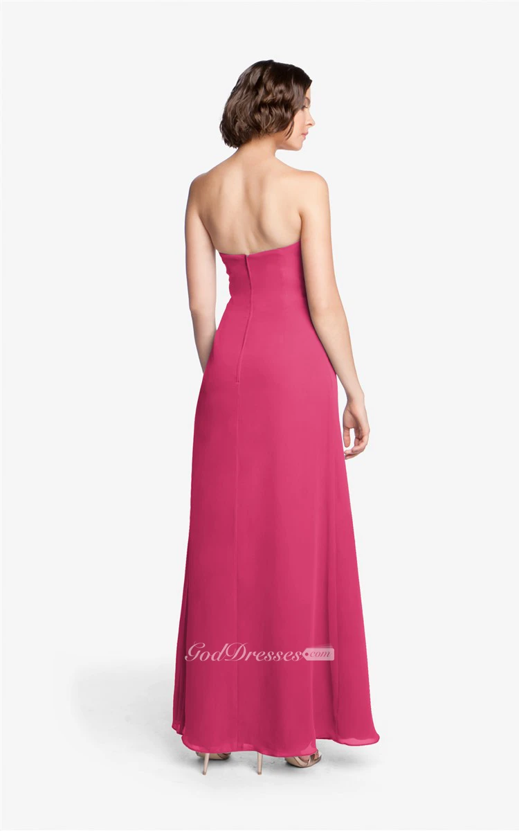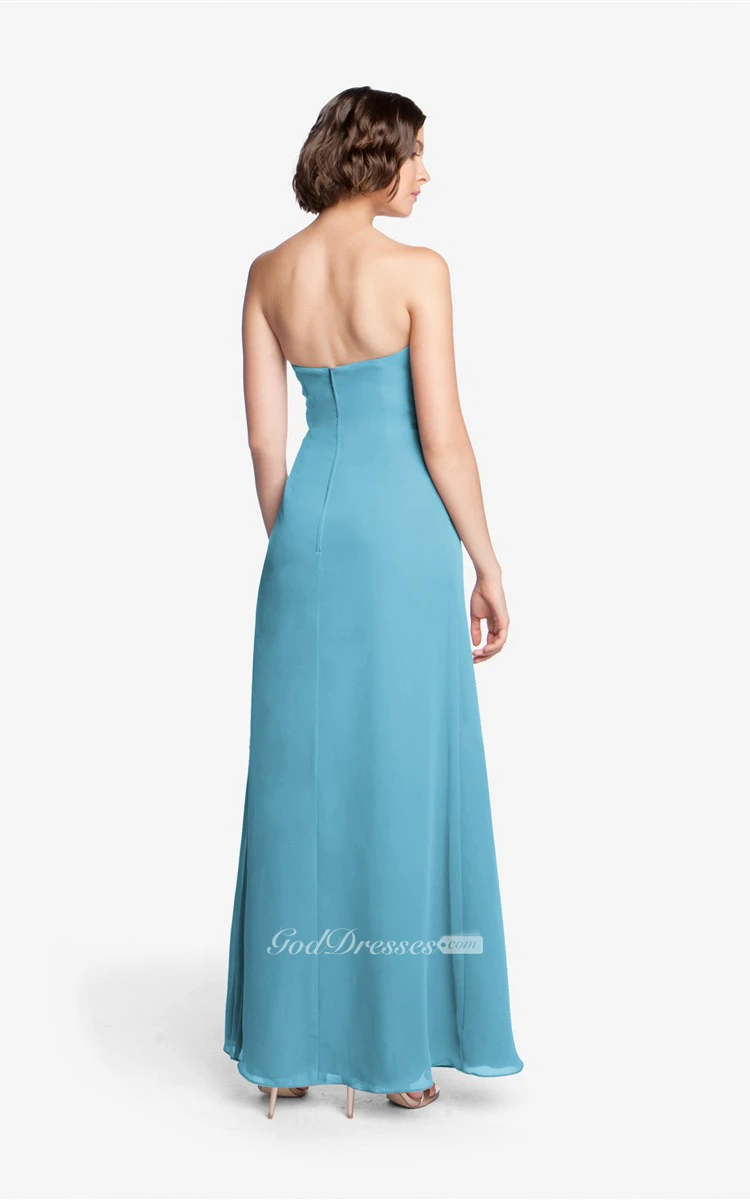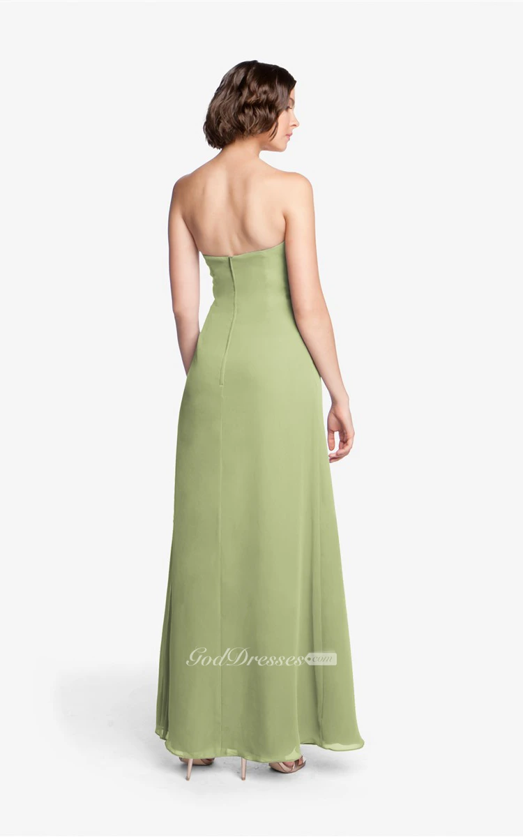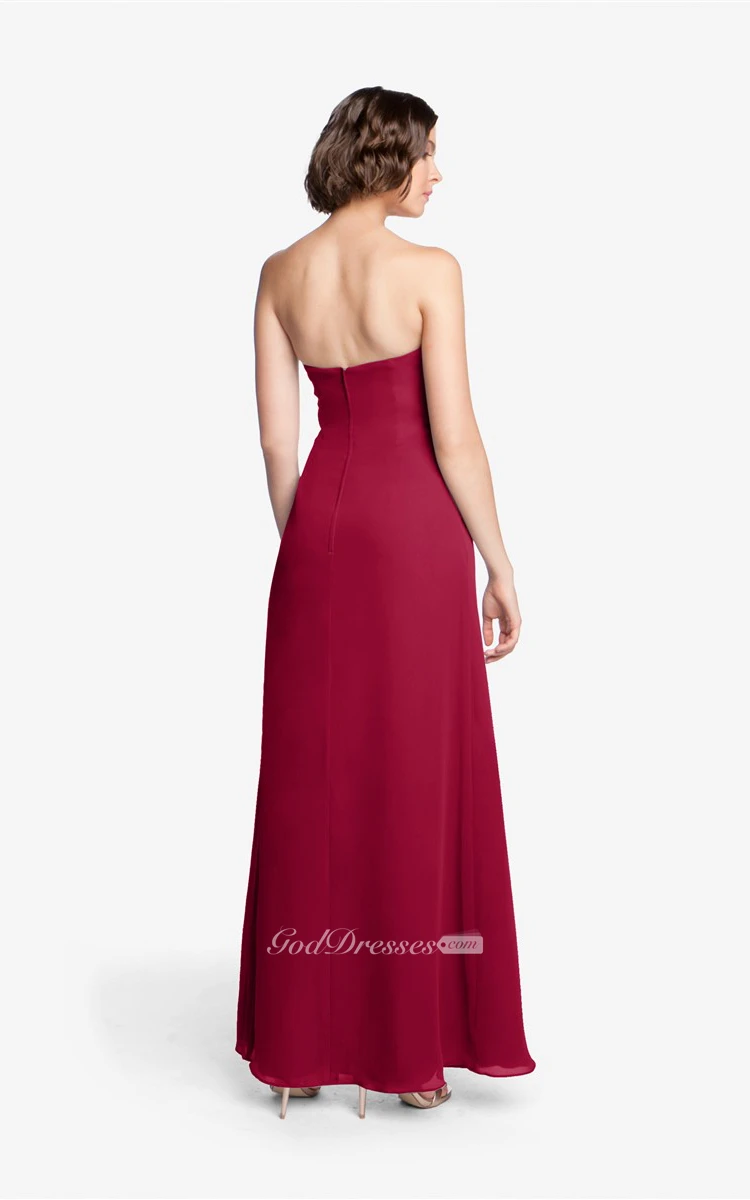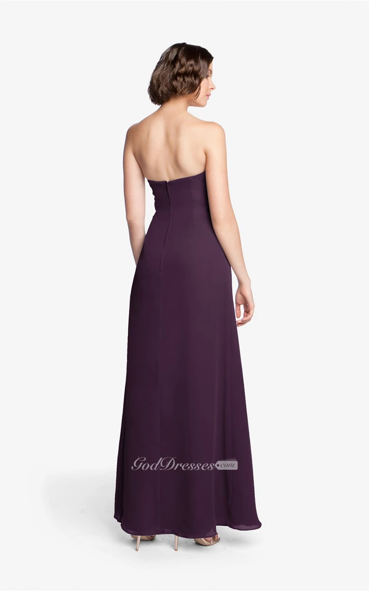 Feminine Strapless Ruched Floor-length Chiffon Dress with Empire Waist