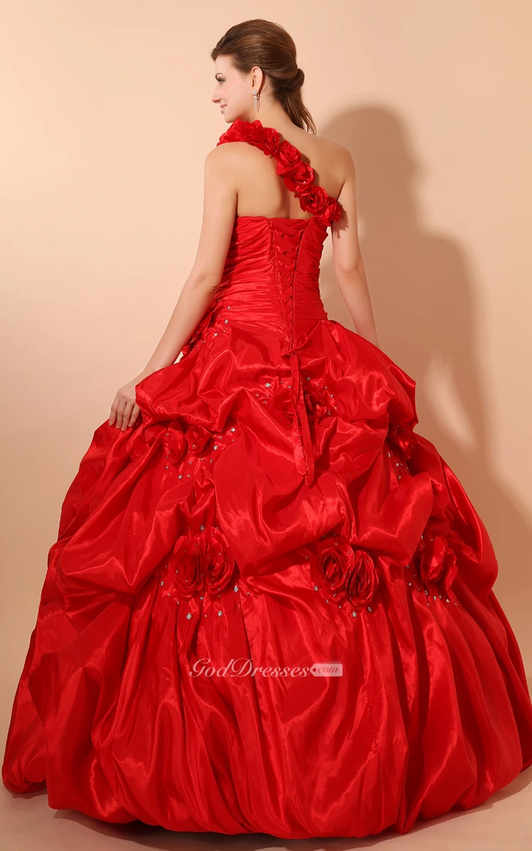 Flamboyant Sweetheart A-Line Ball Gown With Flower and Pick-Up Ruffles