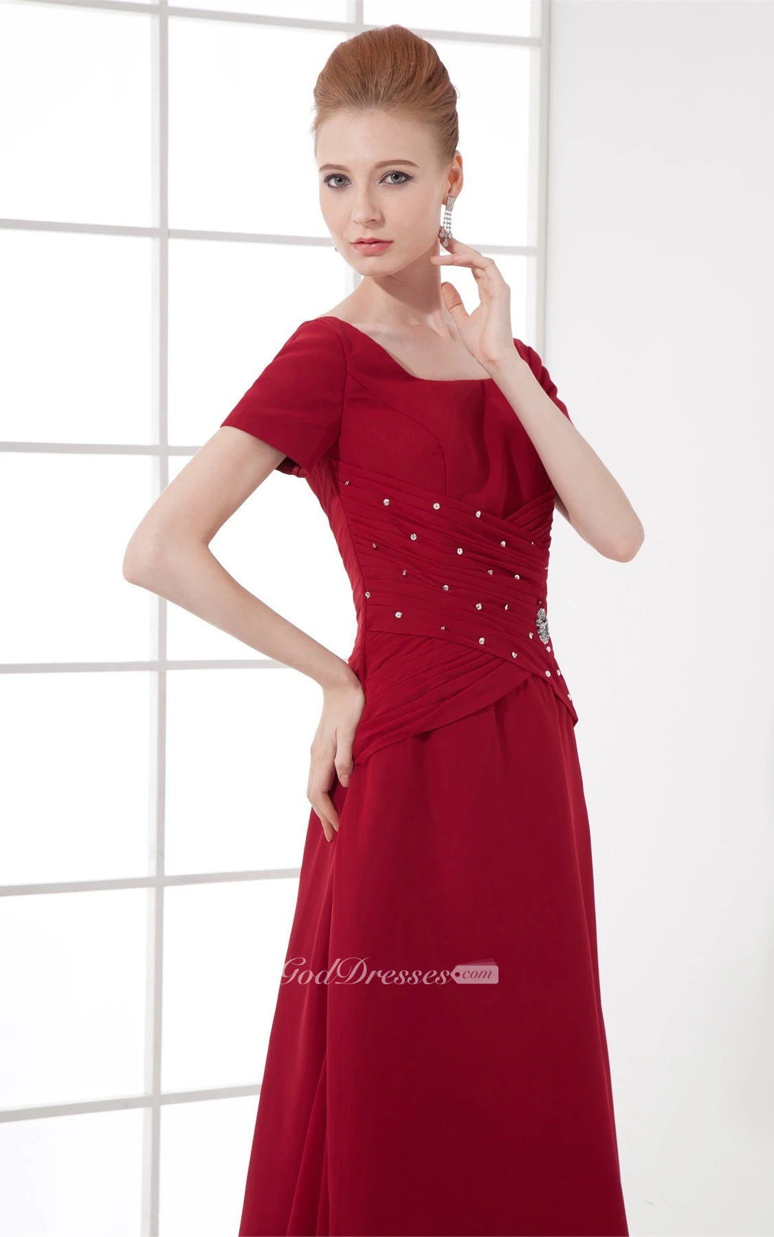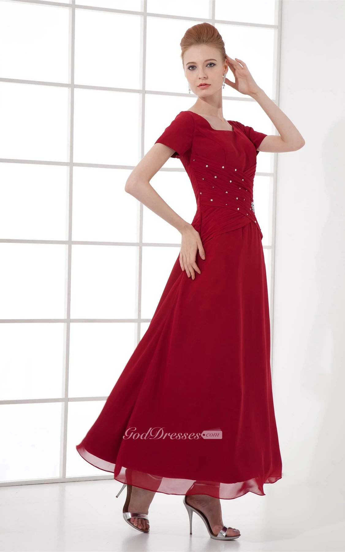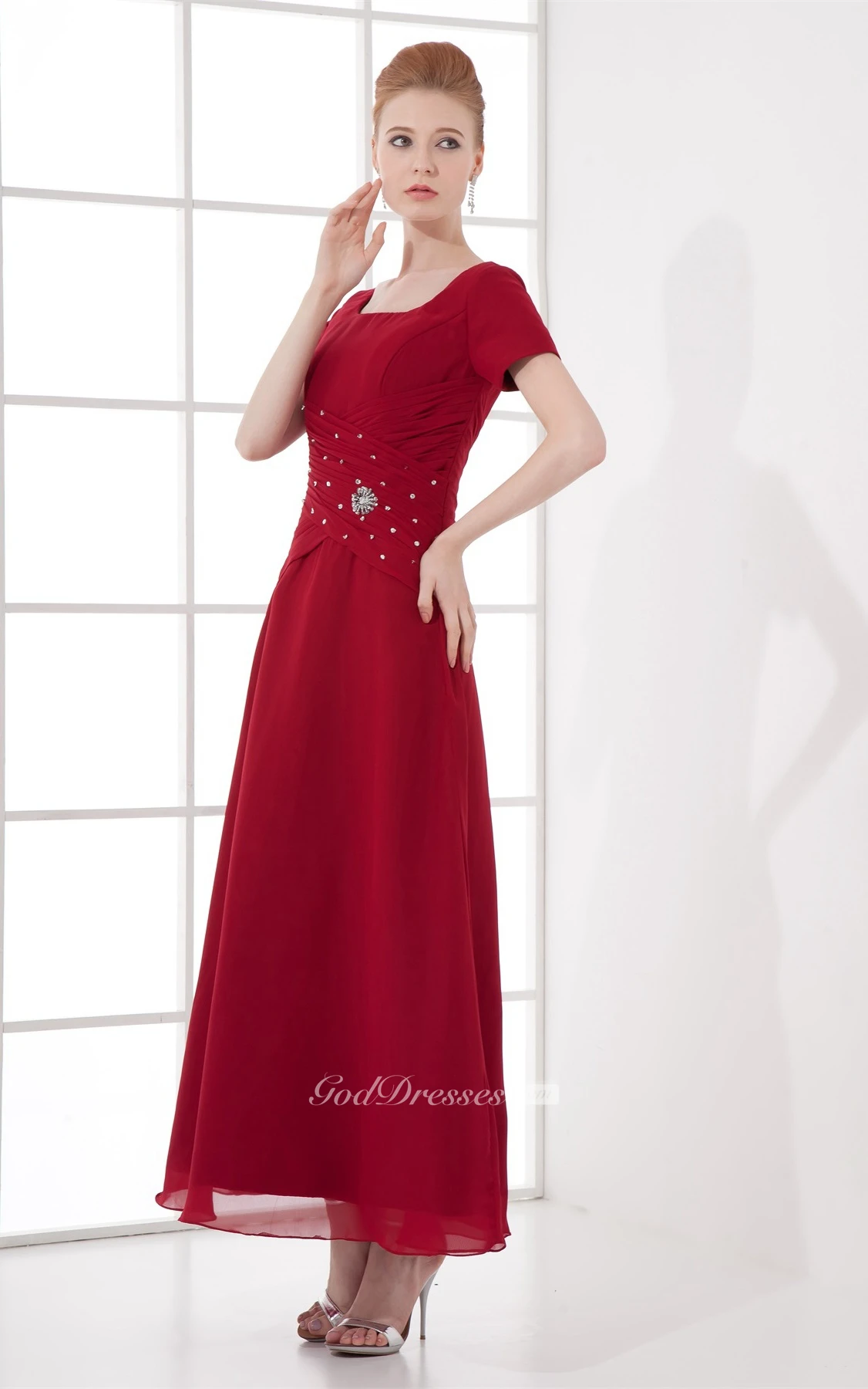 Flattering Square Beaded Ankle Length a Line Chiffon Mother of the Bride Dresses