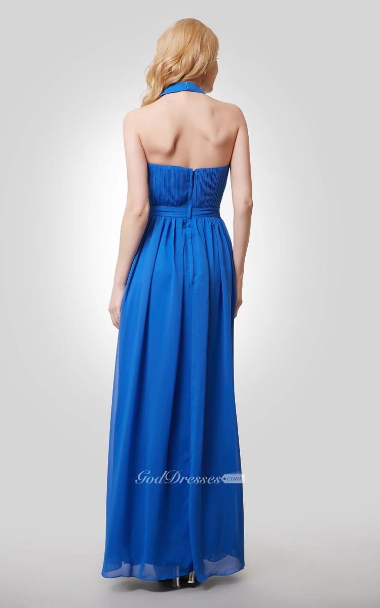 Floor Length A-Line Chiffon Dress With Halter and Keyhole