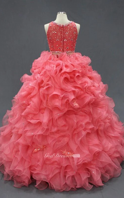 Floor-Length Beading Ruffles Zipper Corset Back Lace Organza Dress