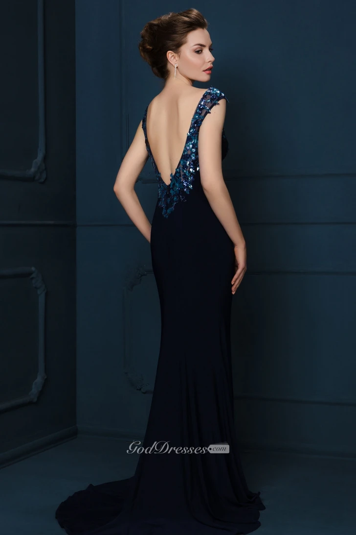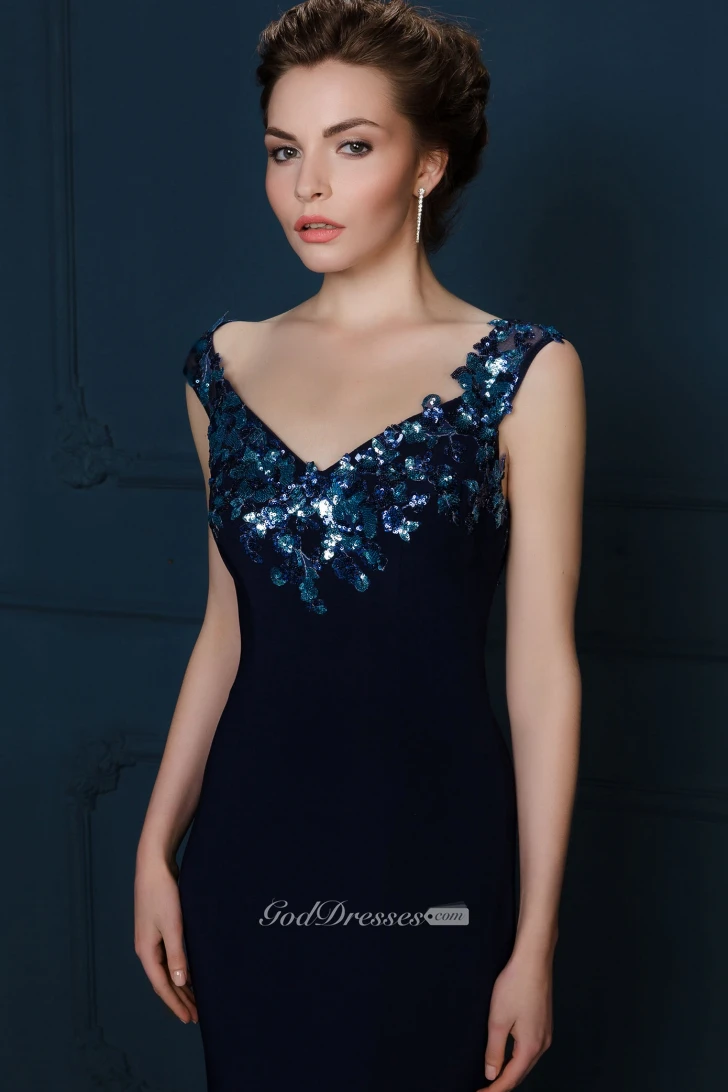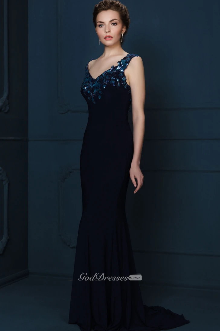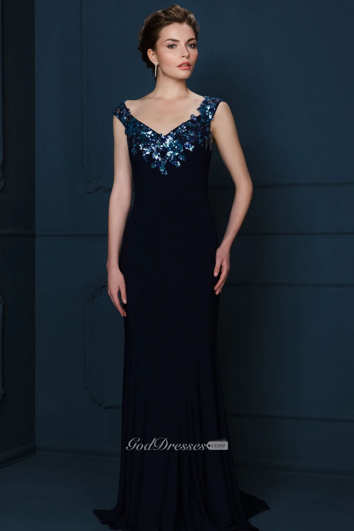 Floor-Length Crystal Sleeveless V-Neck Chiffon Evening Dress