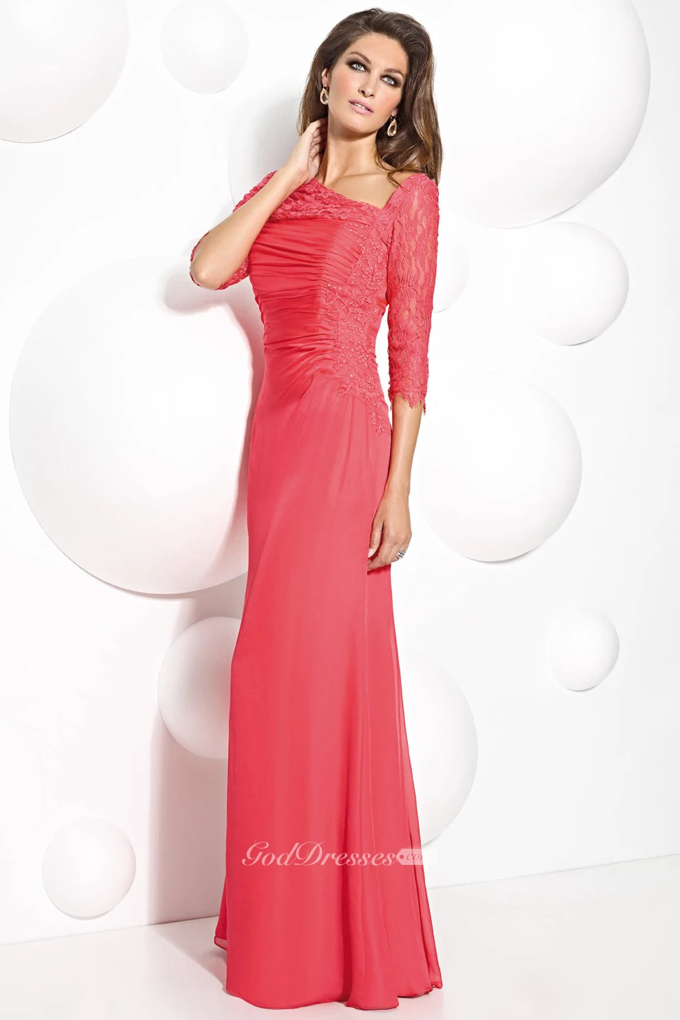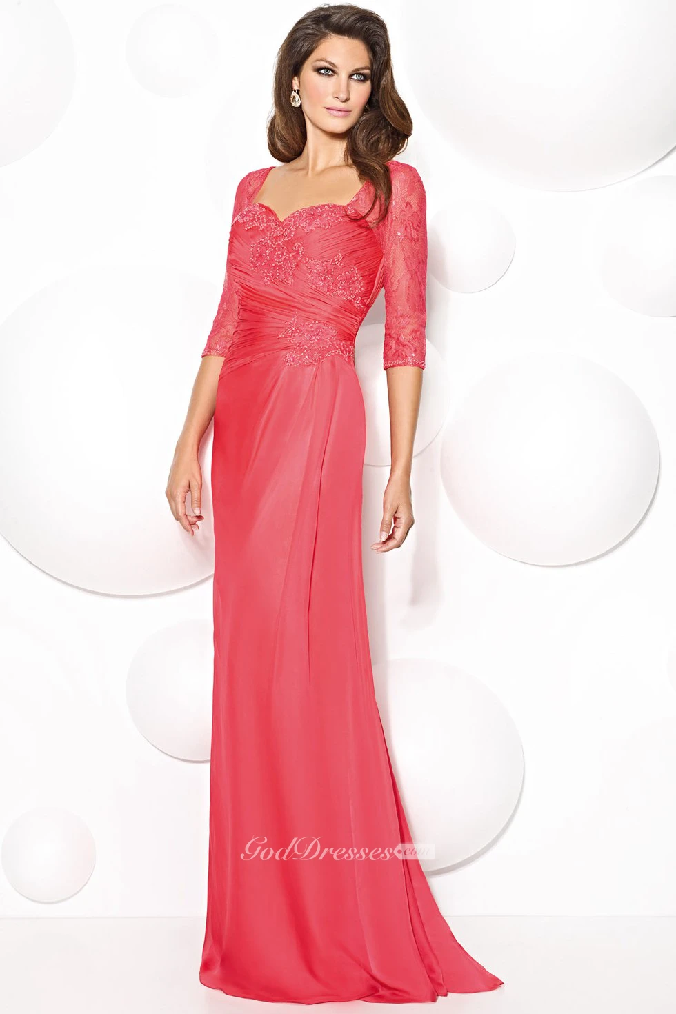 Floor-Length Half Sleeve Appliqued Sweetheart Chiffon Mother Of The Bride Dress
