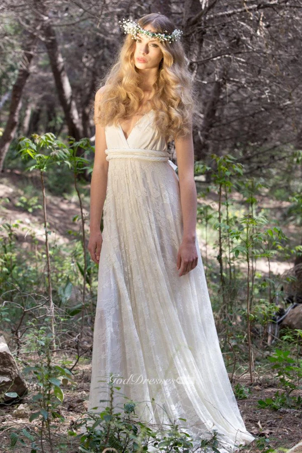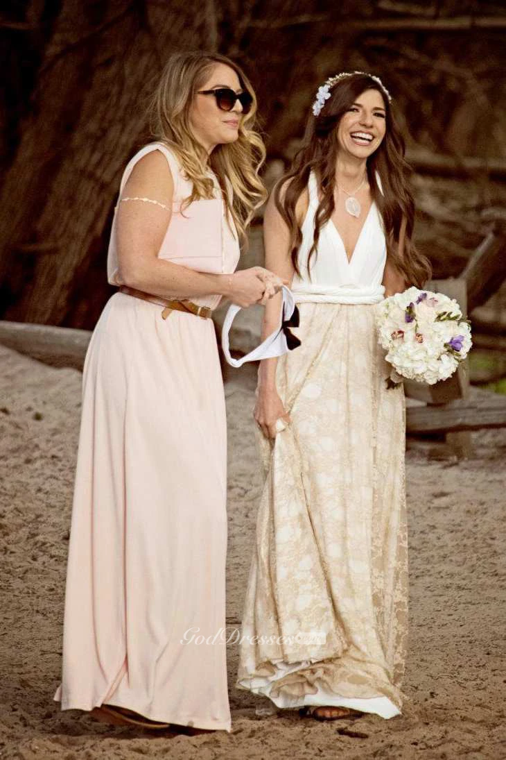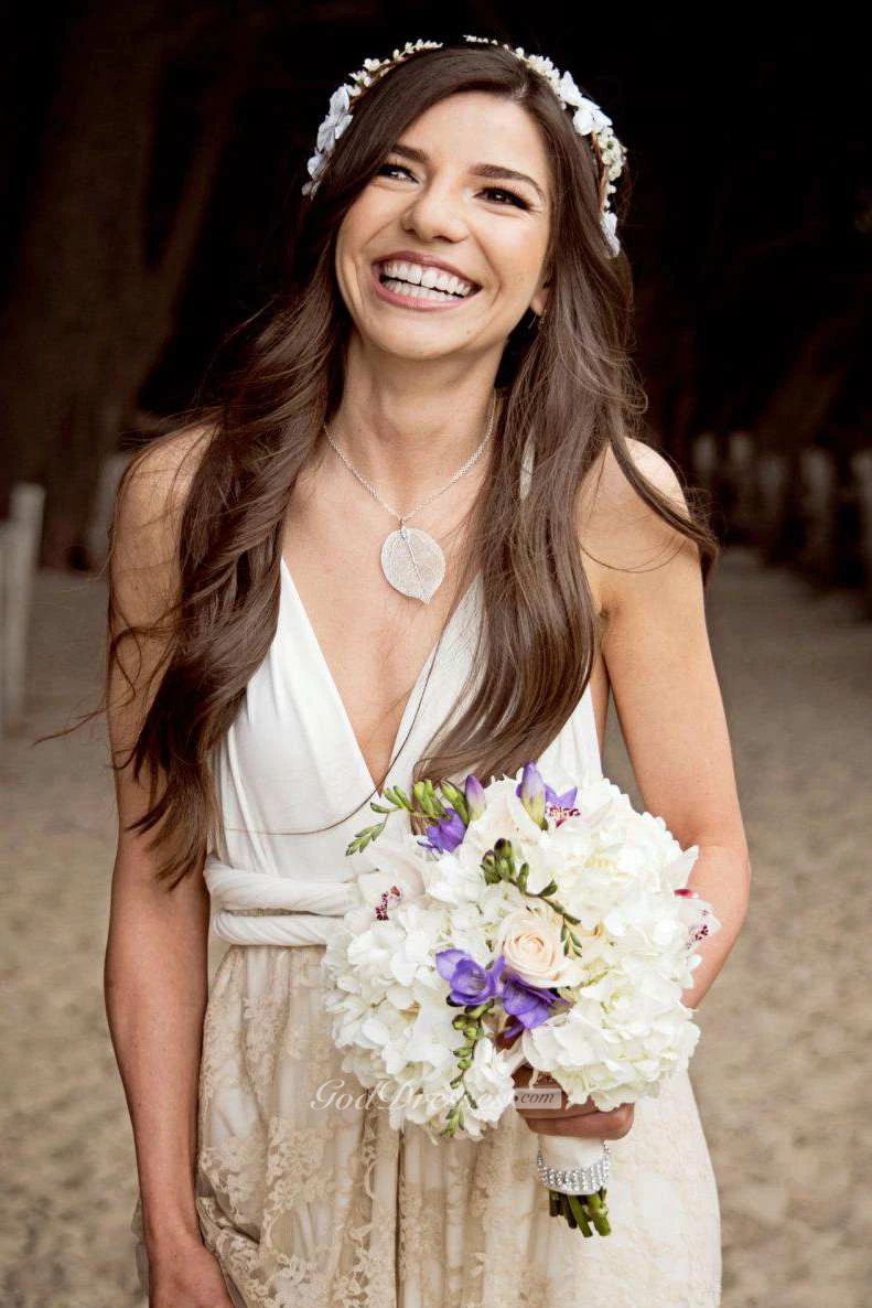 Floor-Length Jersey Satin Lace Backless Wedding Dress