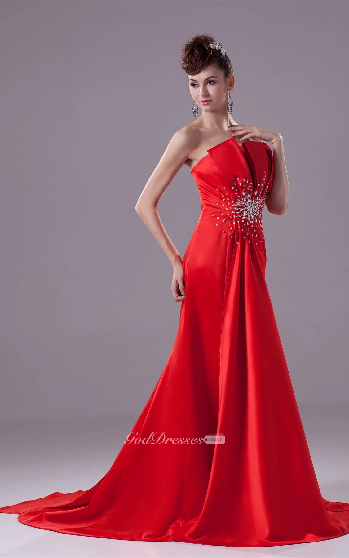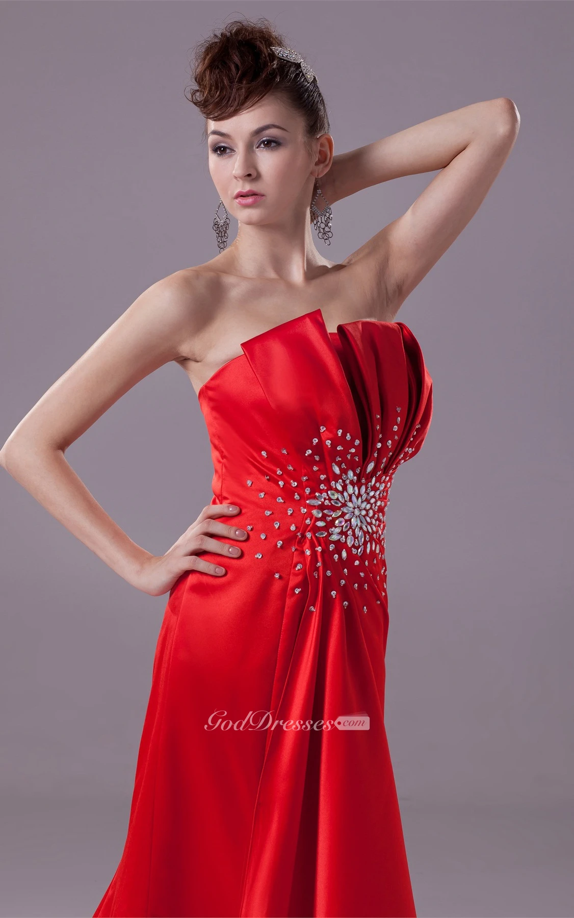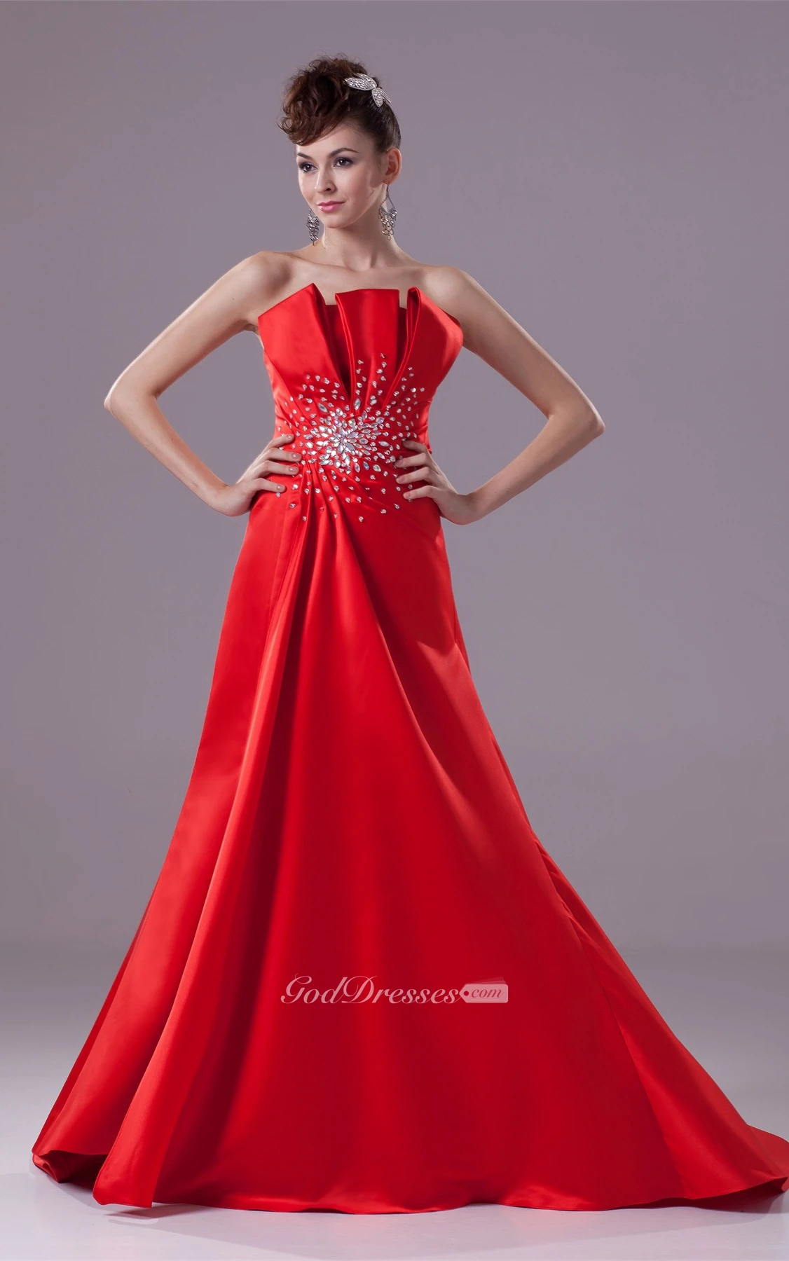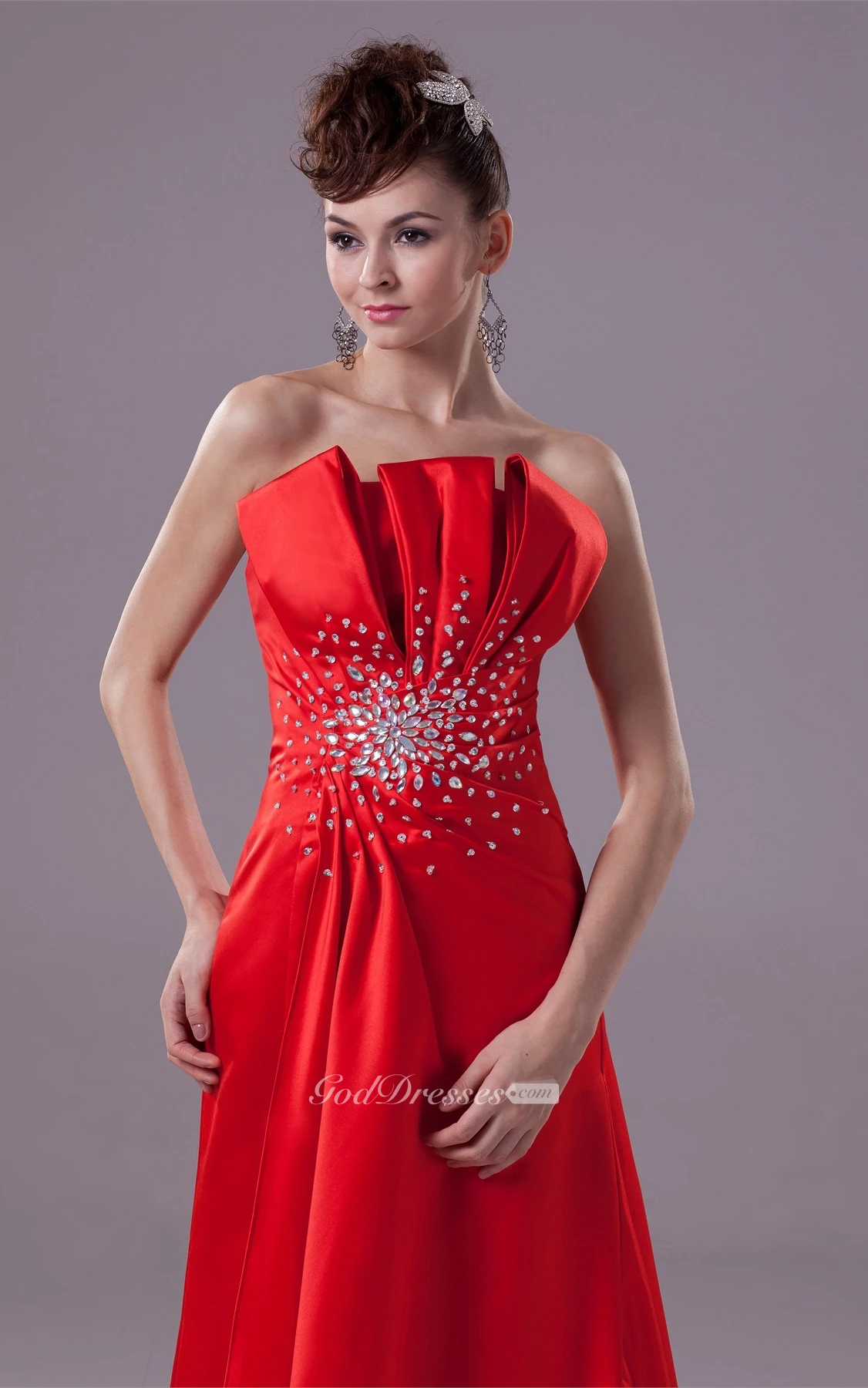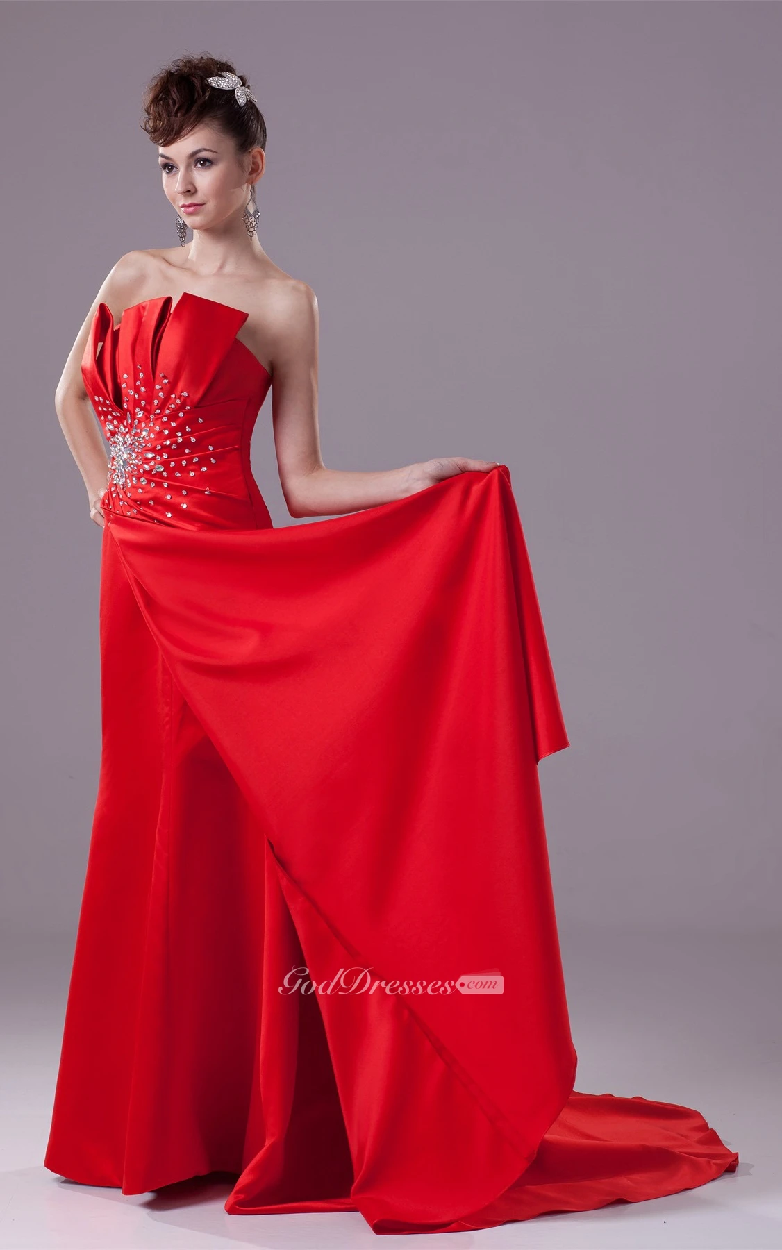 Floor Length Layered Sleeveless A-Line Side Draping Gown With Beadings