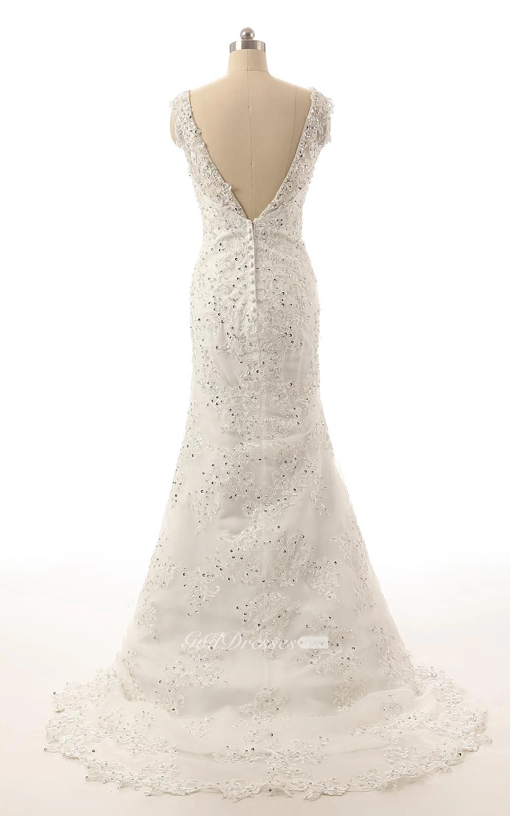 Floor-Length Scoop Bell Cap Beading Appliques Zipper Corset Back Lace Sequins Organza Dress