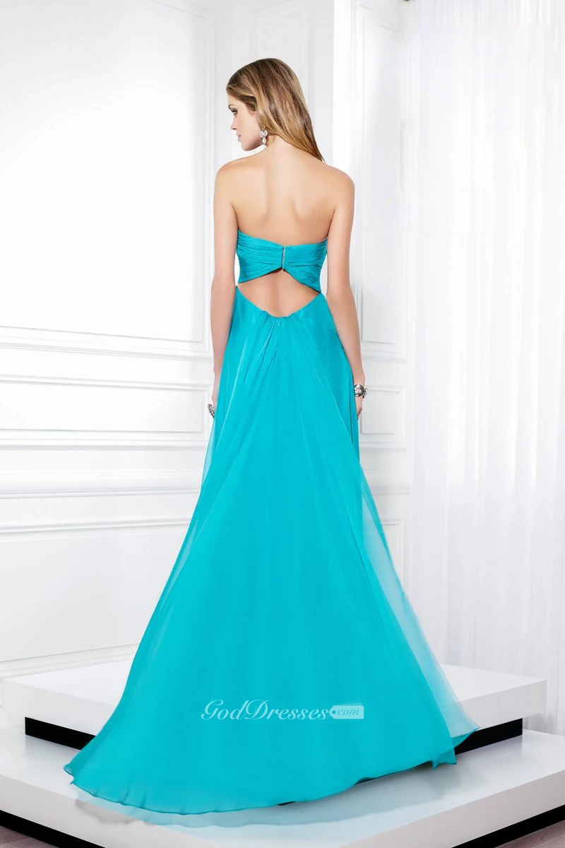 Floor-Length Sleeveless Strapless Ruched Chiffon Prom Dress With Beading
