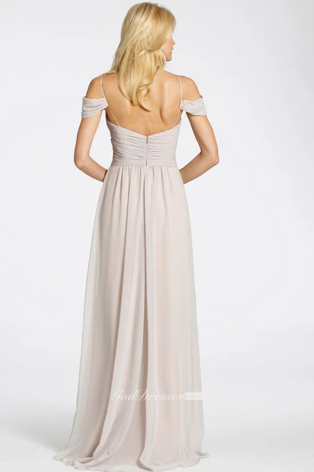Floor-Length Spaghetti Criss-Cross Chiffon Bridesmaid Dress With Brush Train And V Back