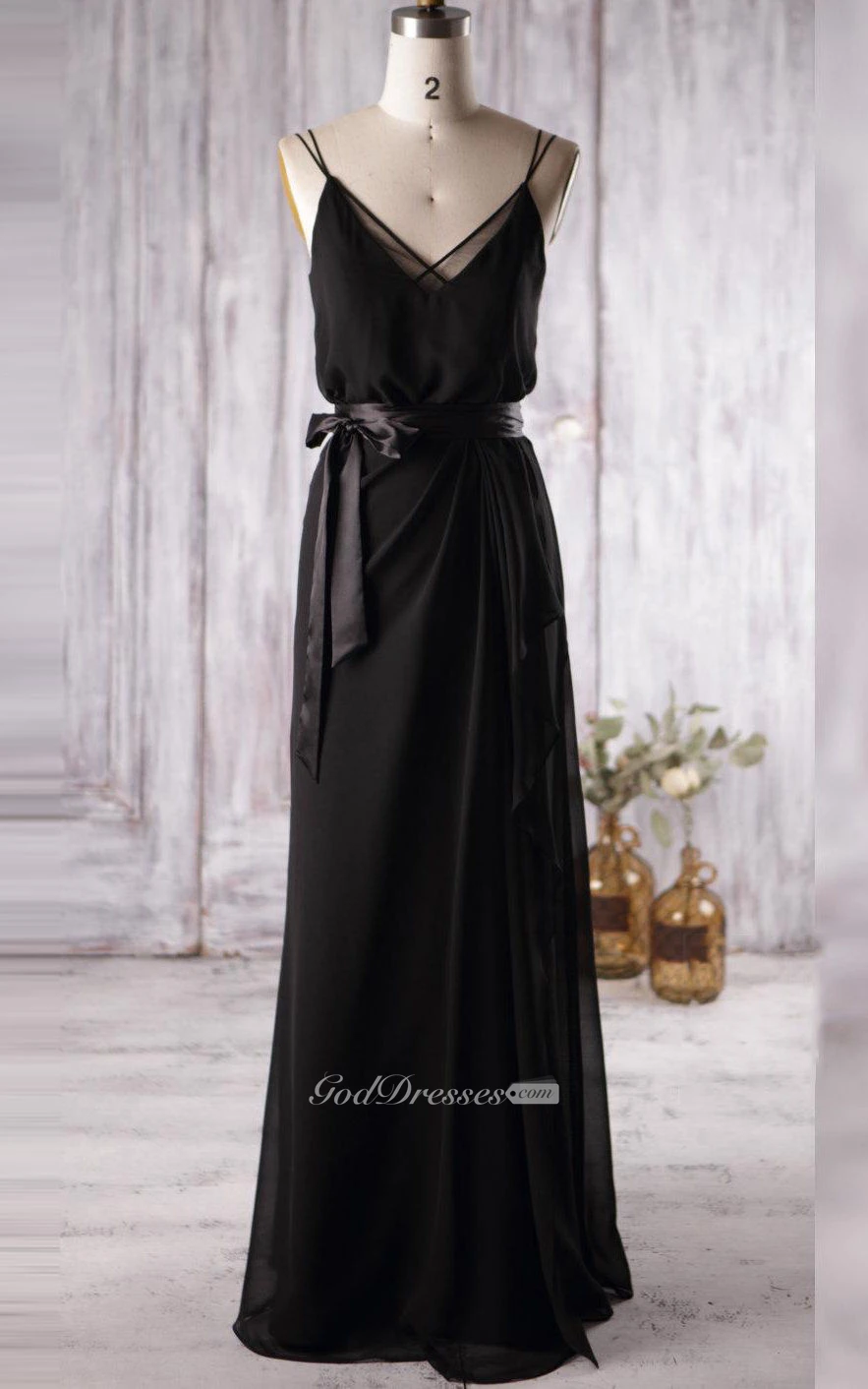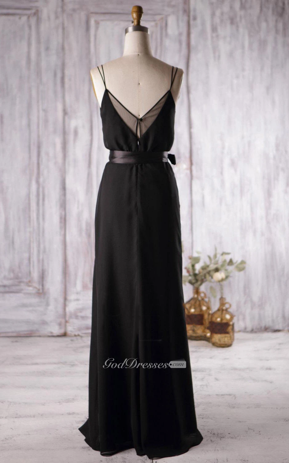 Floor-length Spaghetti Strapped V-neck Chiffon&Tulle Dress With Illusion
