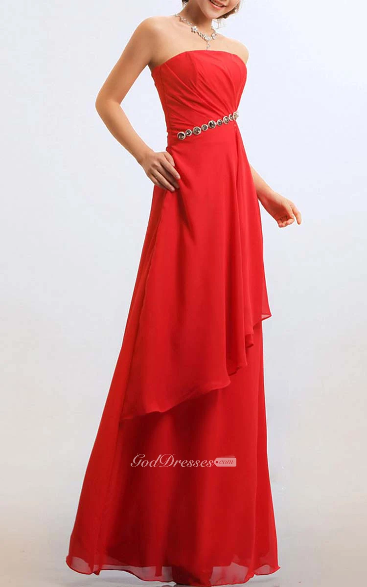 Floor-length Strapless Side-draped Empire Chiffon Bridesmaid Dress