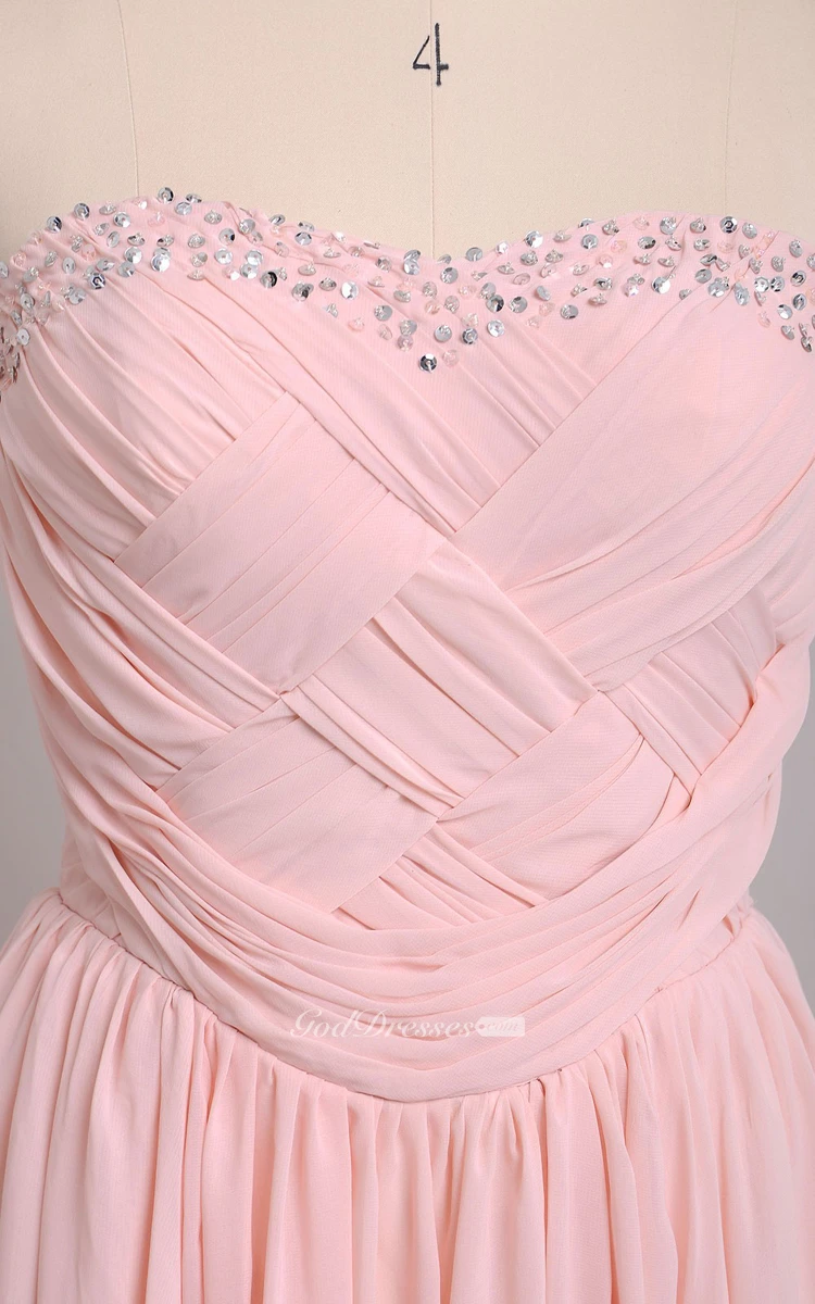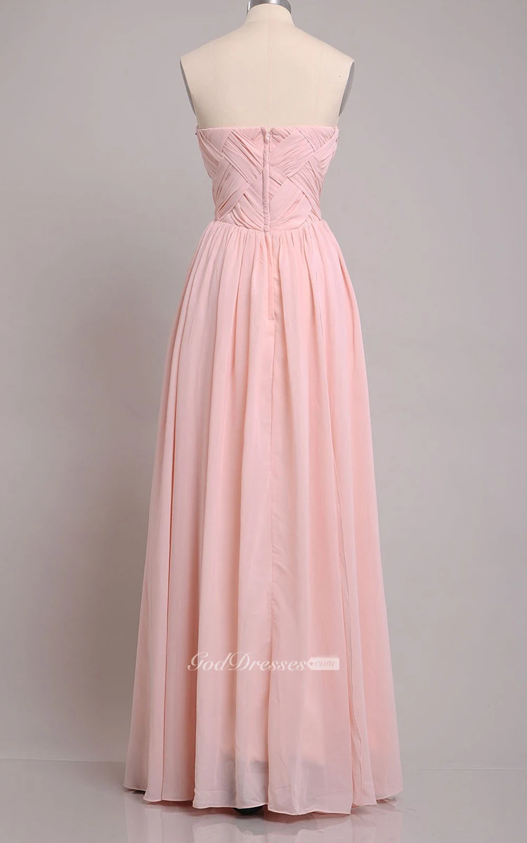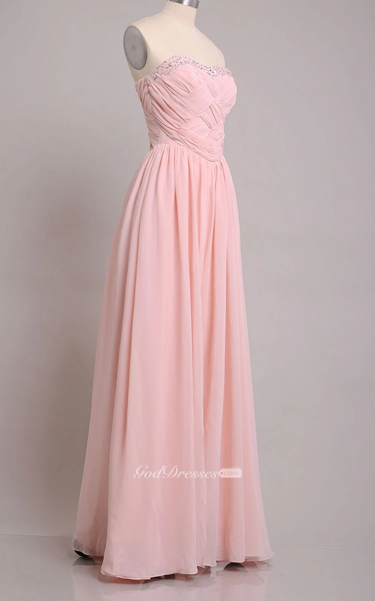 Floor-length Sweetheart Beaded and Pleated Sheath Chiffon Bridesmaid Dress
