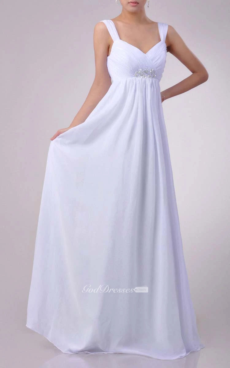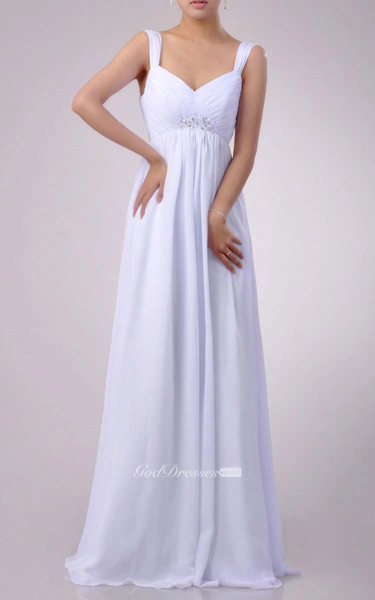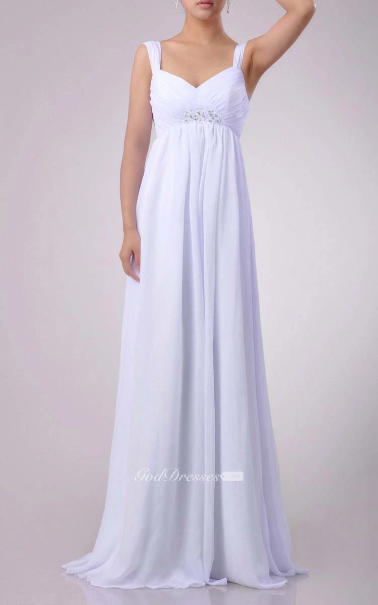 Floor-length Sweetheart Empire Chiffon Dress With Beading