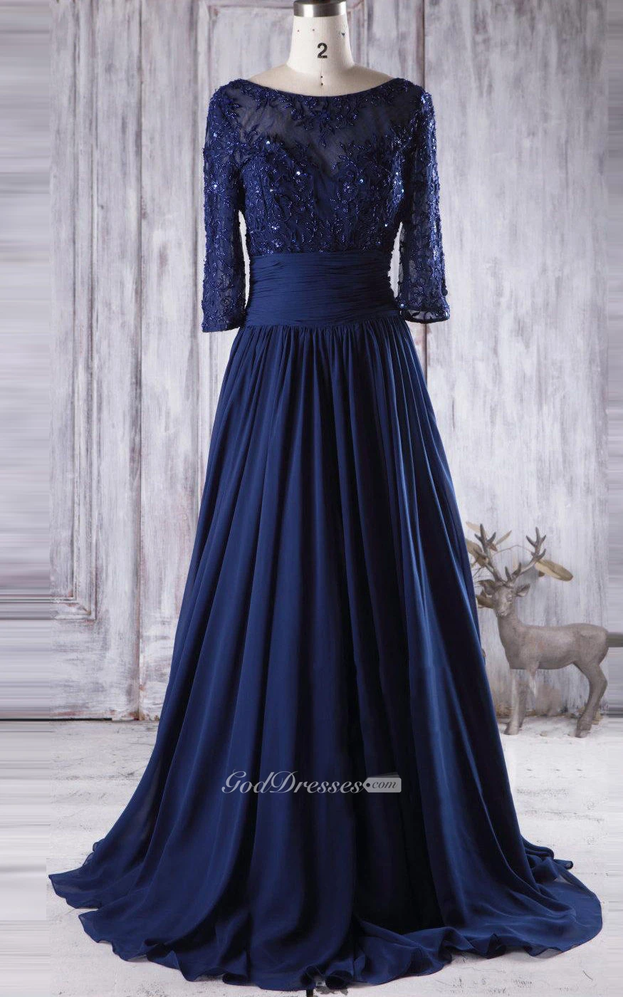 Floor-length Sweetheart Long Sleeve Chiffon&Tulle&Lace Dress With Beading&Illusion