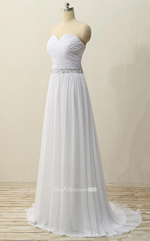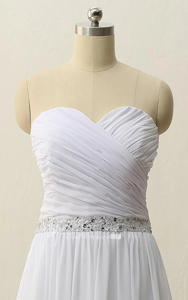 Floor-Length Sweetheart Pleats Beading Zipper Chiffon Dress
