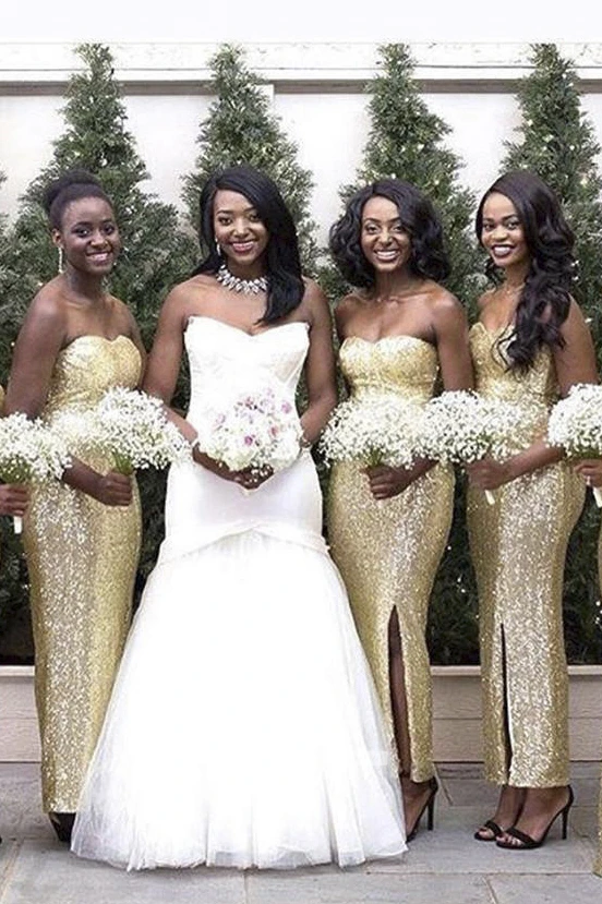 Floor-length Sweetheart Split Front Zipper Sequins Dress
