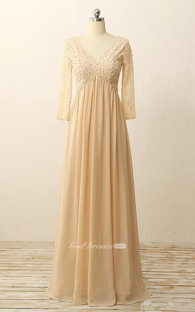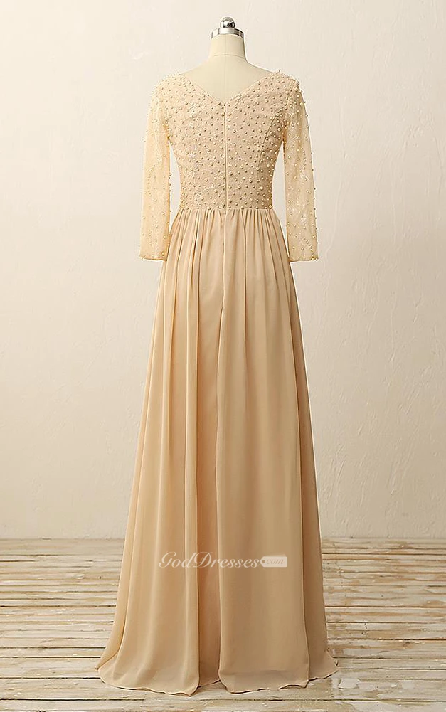 Floor-length V-neck Long Sleeve Zipper Chiffon Lace Dress