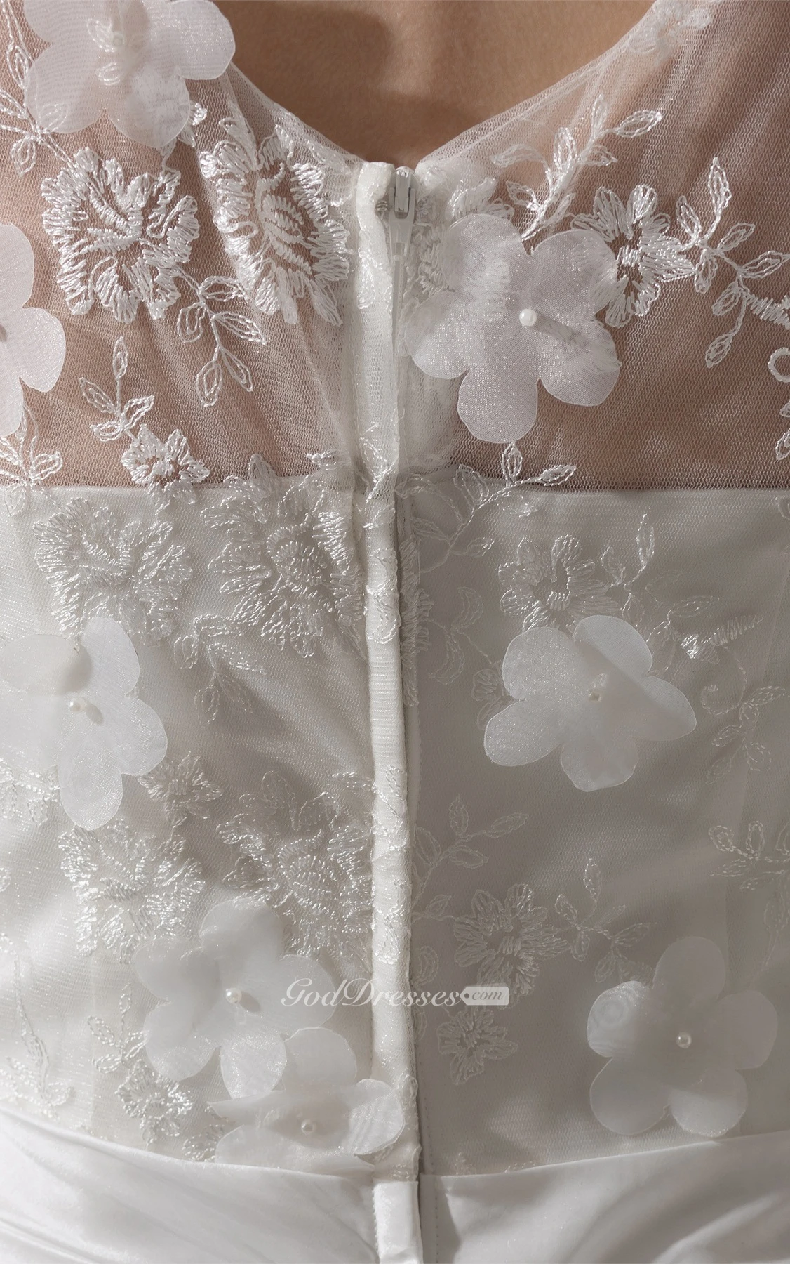 Floral A-Line Appliqued Sleeveless Illusion Neckline and Gown With Draping