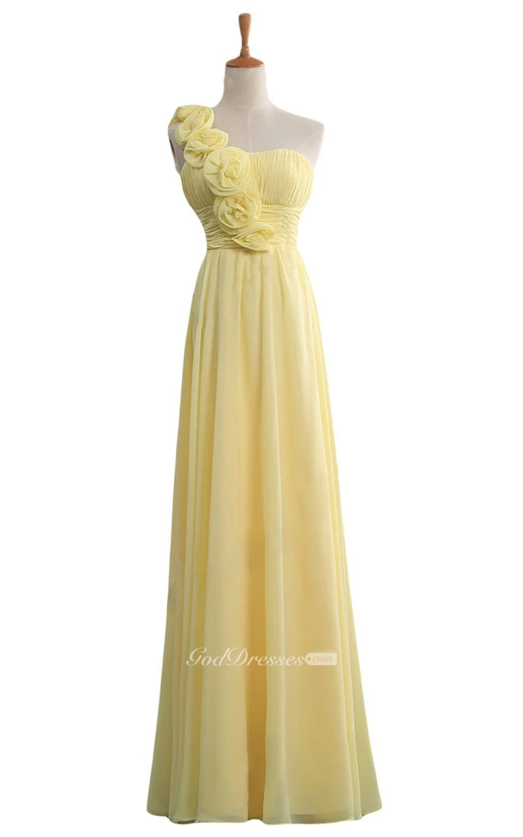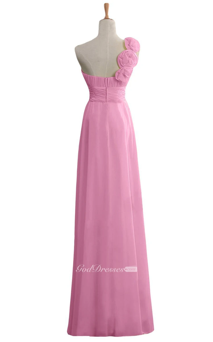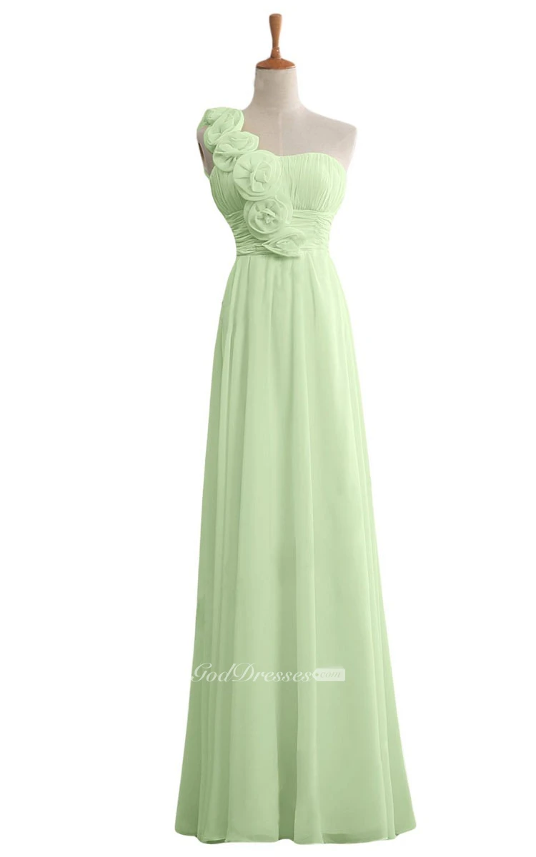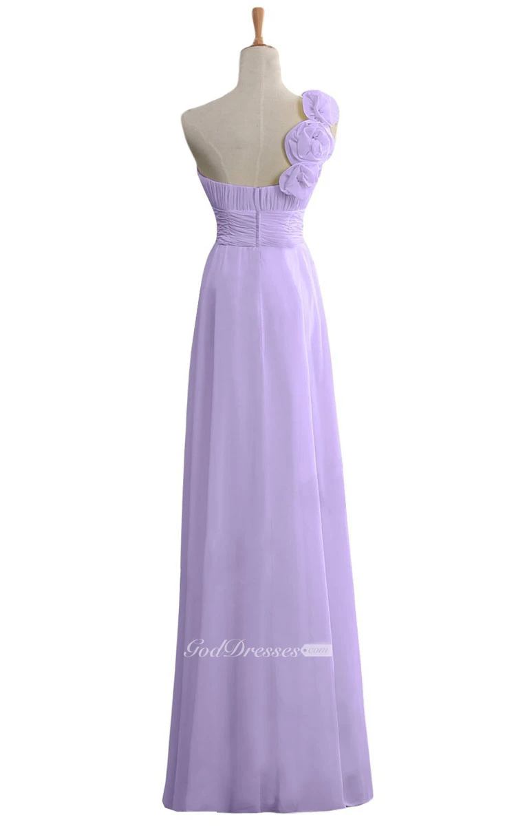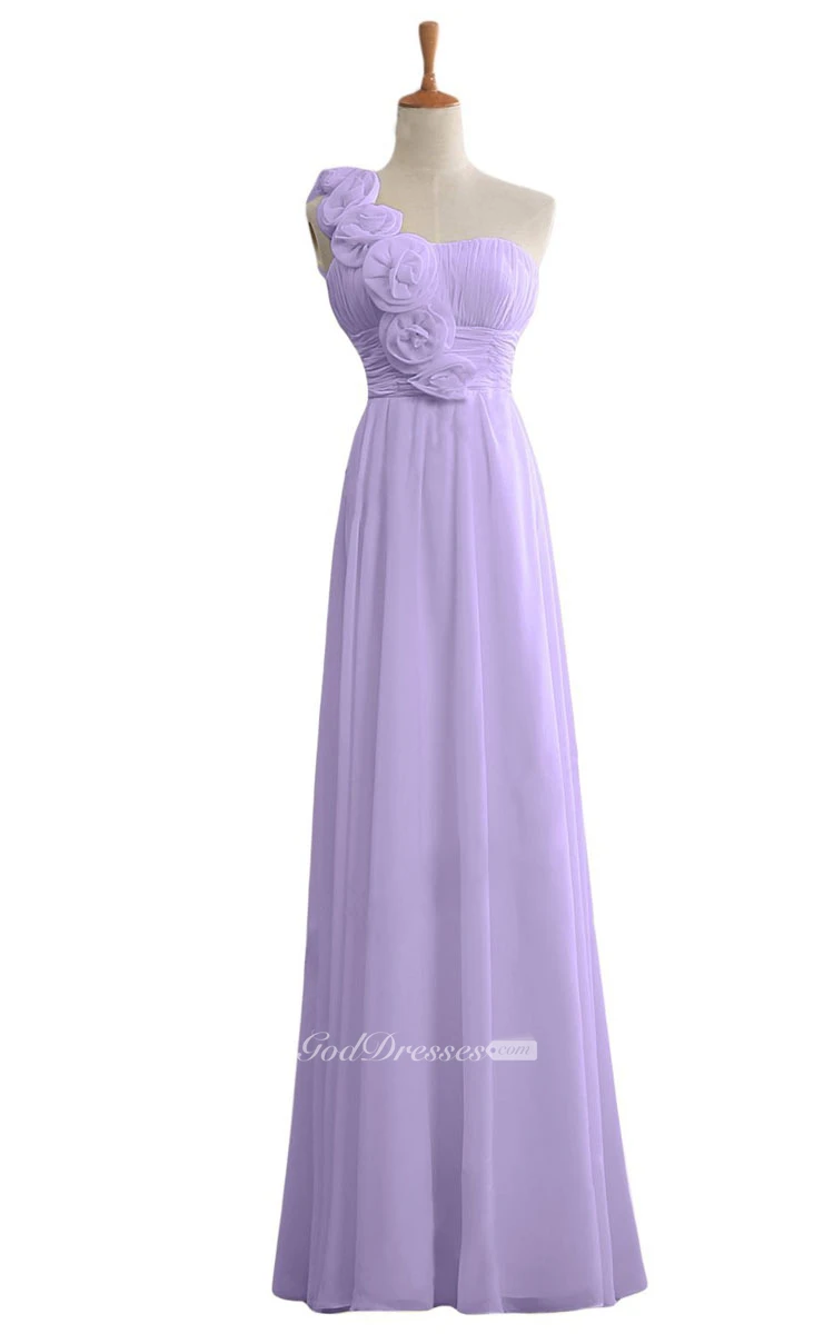 Floral One-shoulder Chiffon A-line Gown With Ruched Band