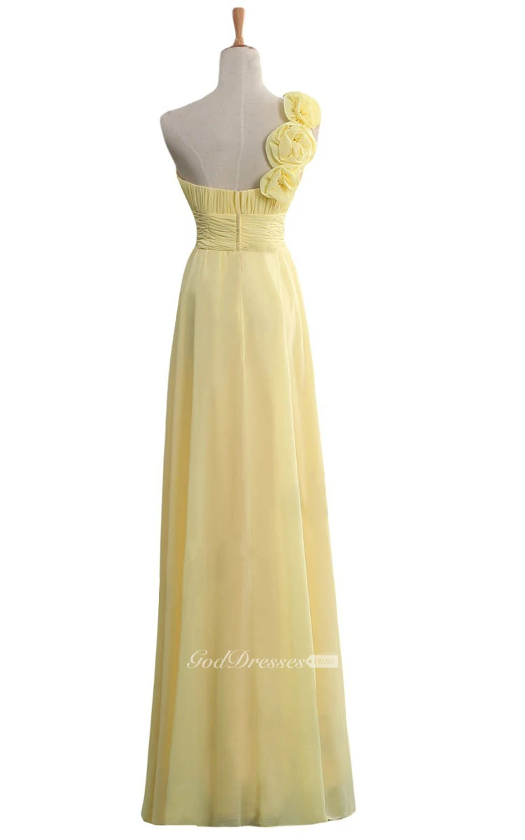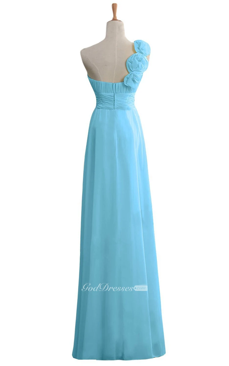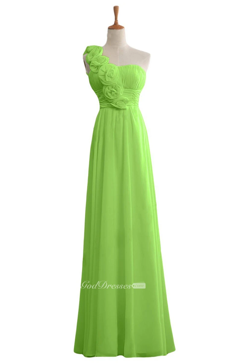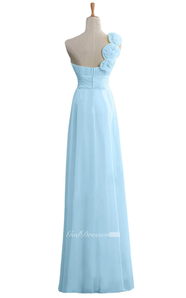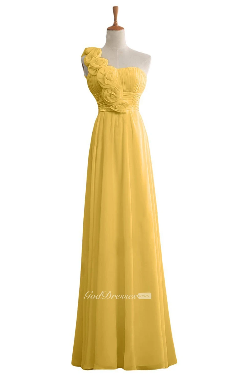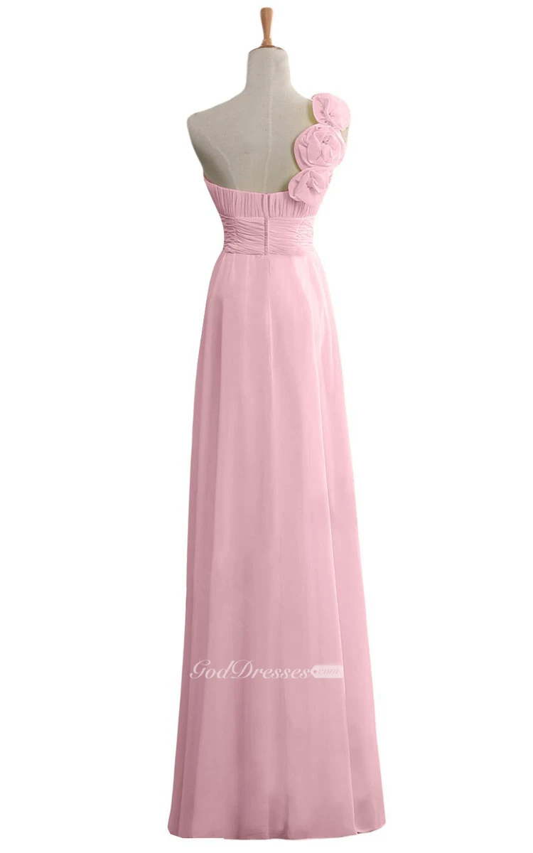 Floral One-shoulder Chiffon A-line Gown With Ruched Band