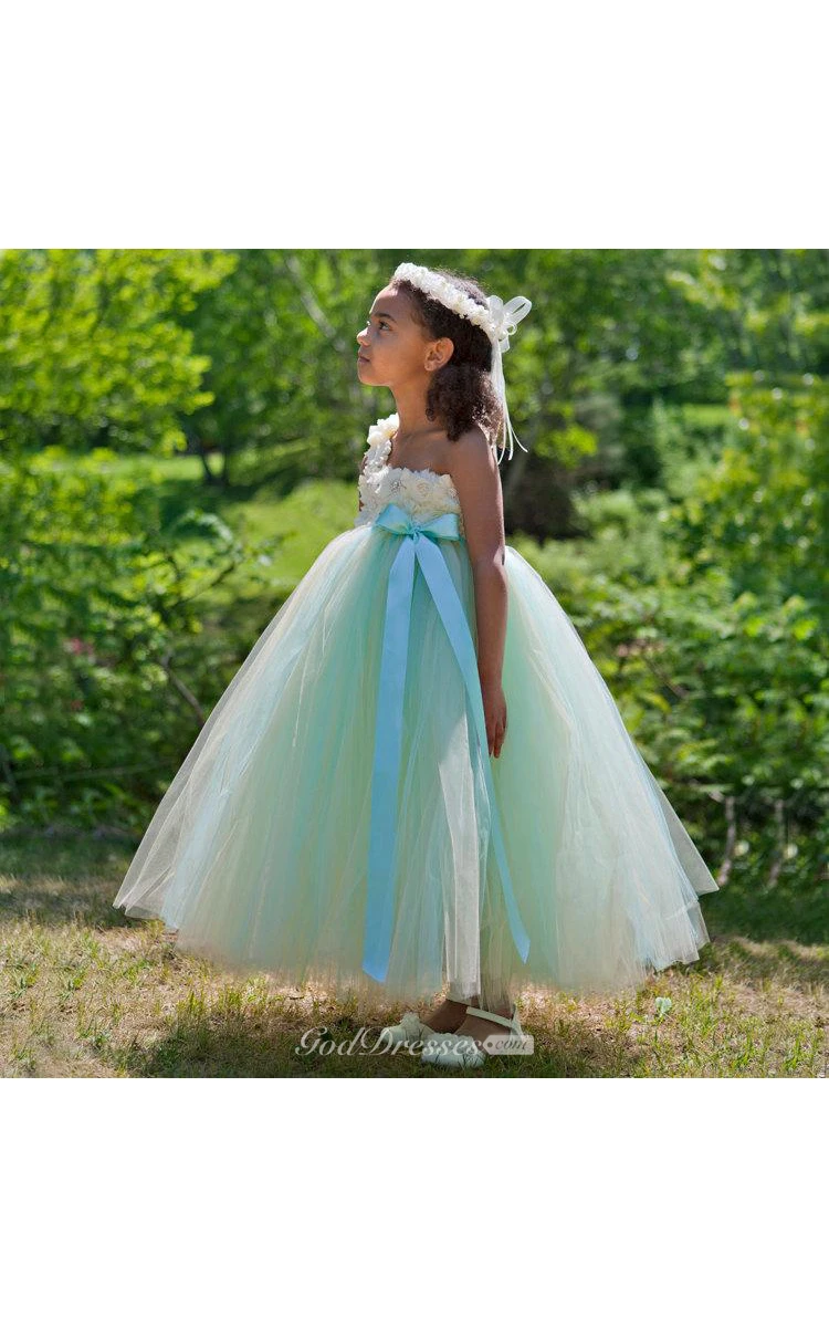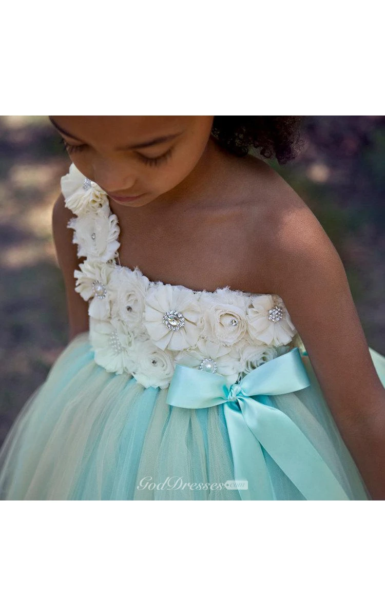 Floral One-shoulder Empire Tulle Ball Gown With Sash