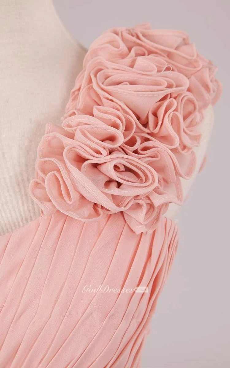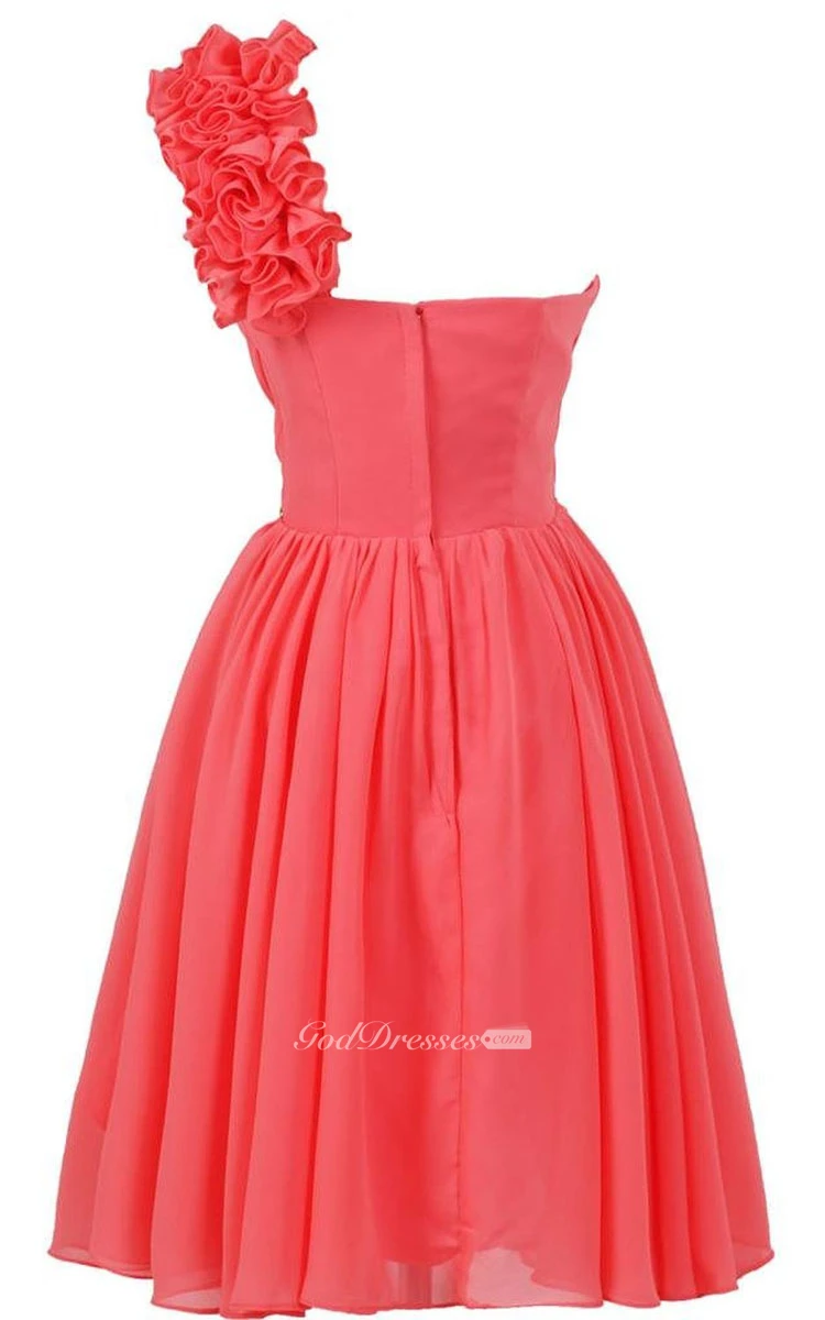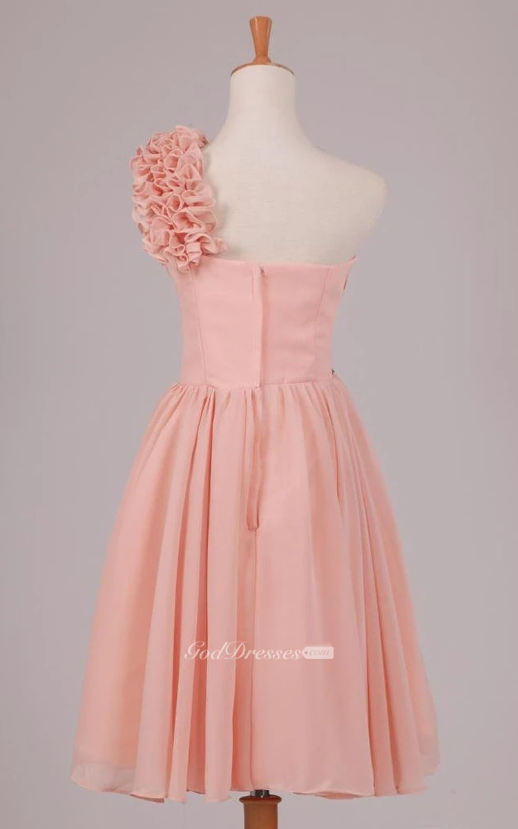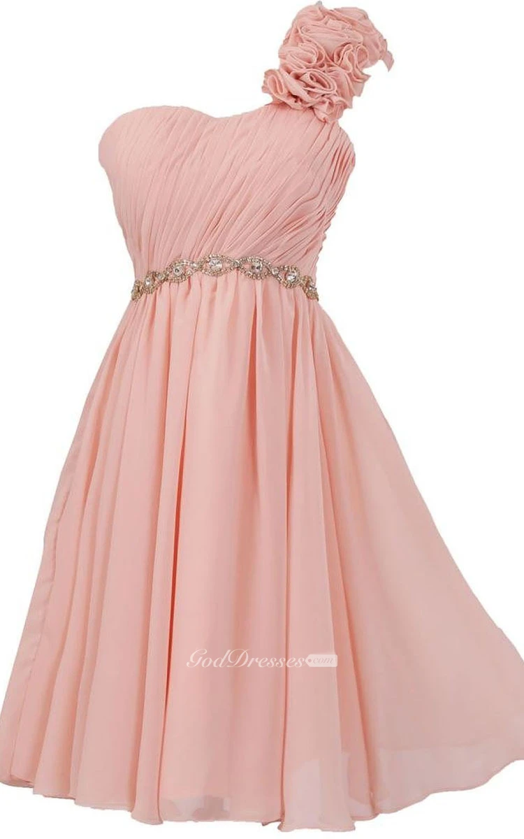 Floral One-shoulder Pleated Short Dress With Beaded Band