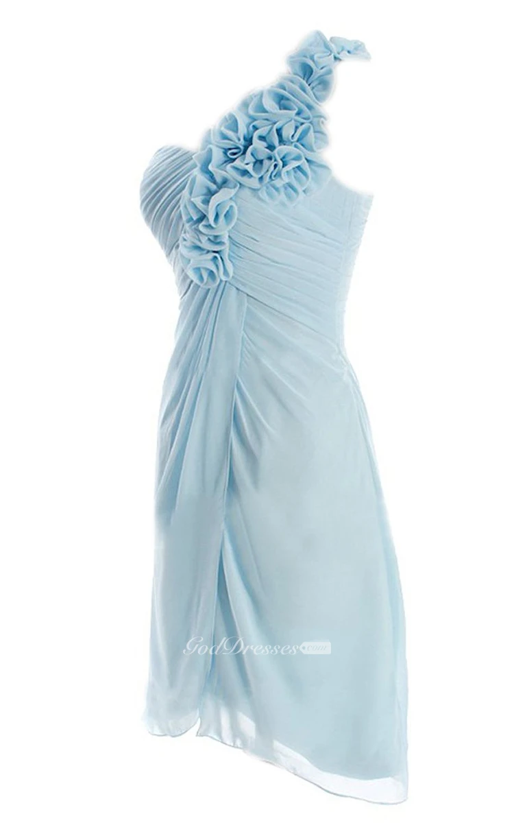 Floral One-shoulder Short Dress With Side-drappping