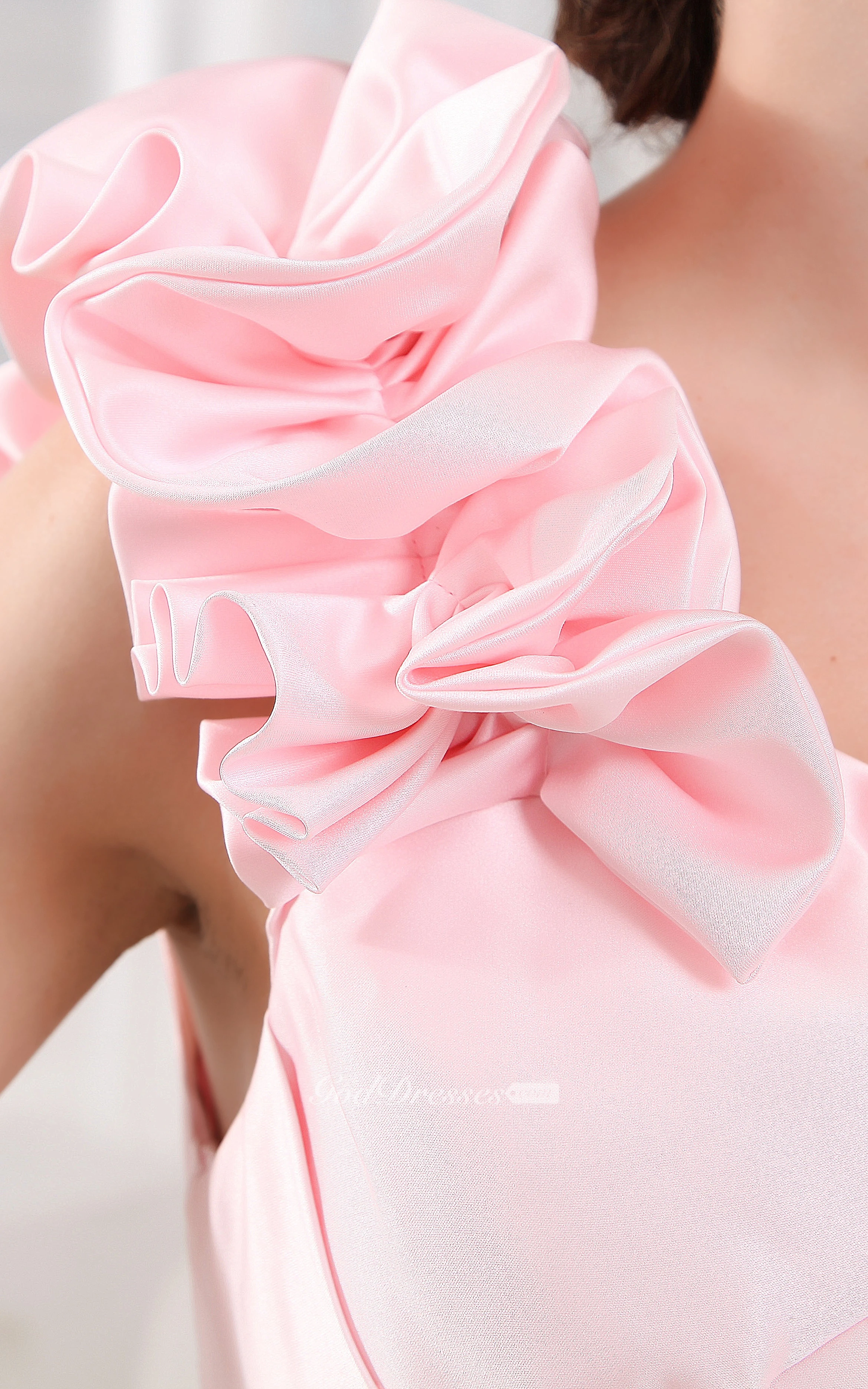 Floral Ruched Sleeveless Short Dress With Single Strap and Watteau Train