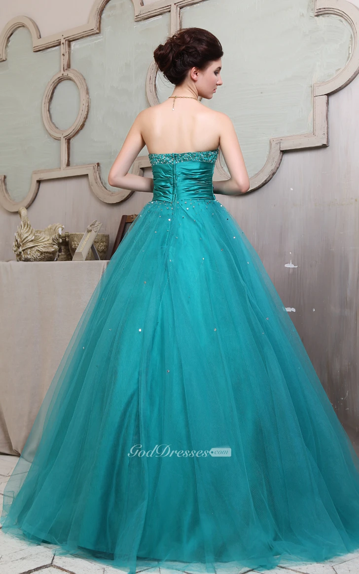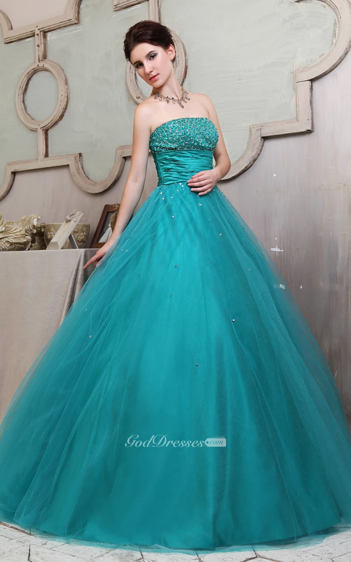 Floral Strapless A-Line Ball Gown With Ruffles and Beading