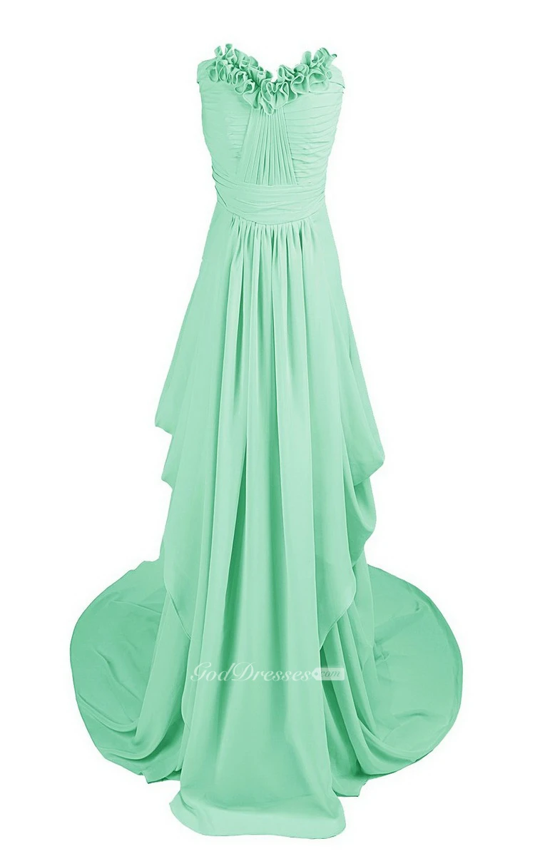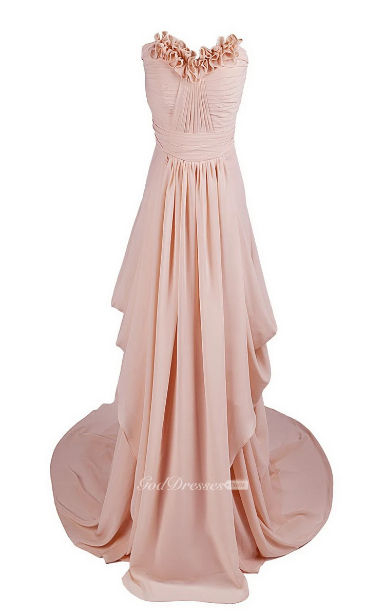 Floral Strapless Drapped Chiffon A-line Gown With Train