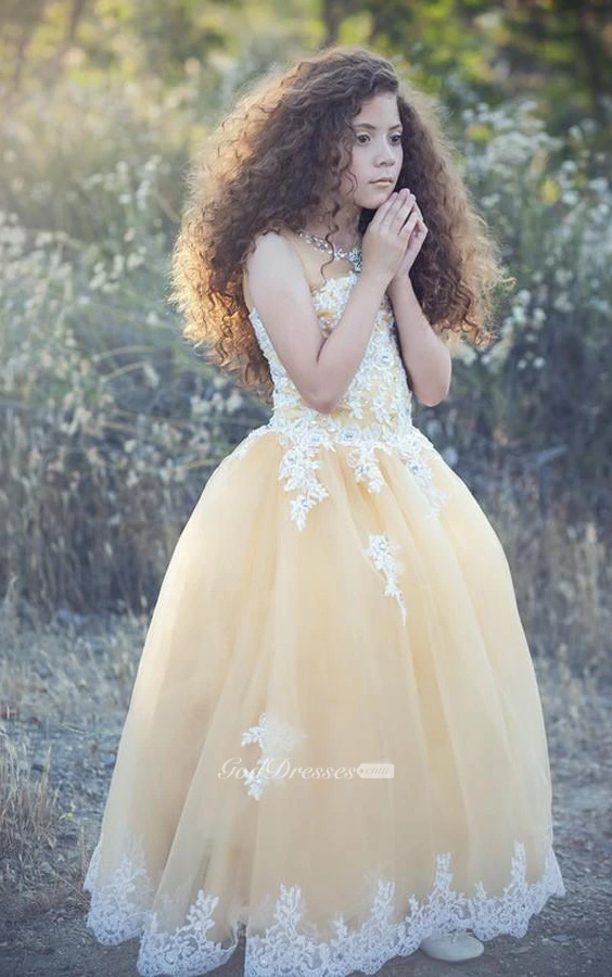Flower Girl Beading Neck Tulle Ball Gown With Lace