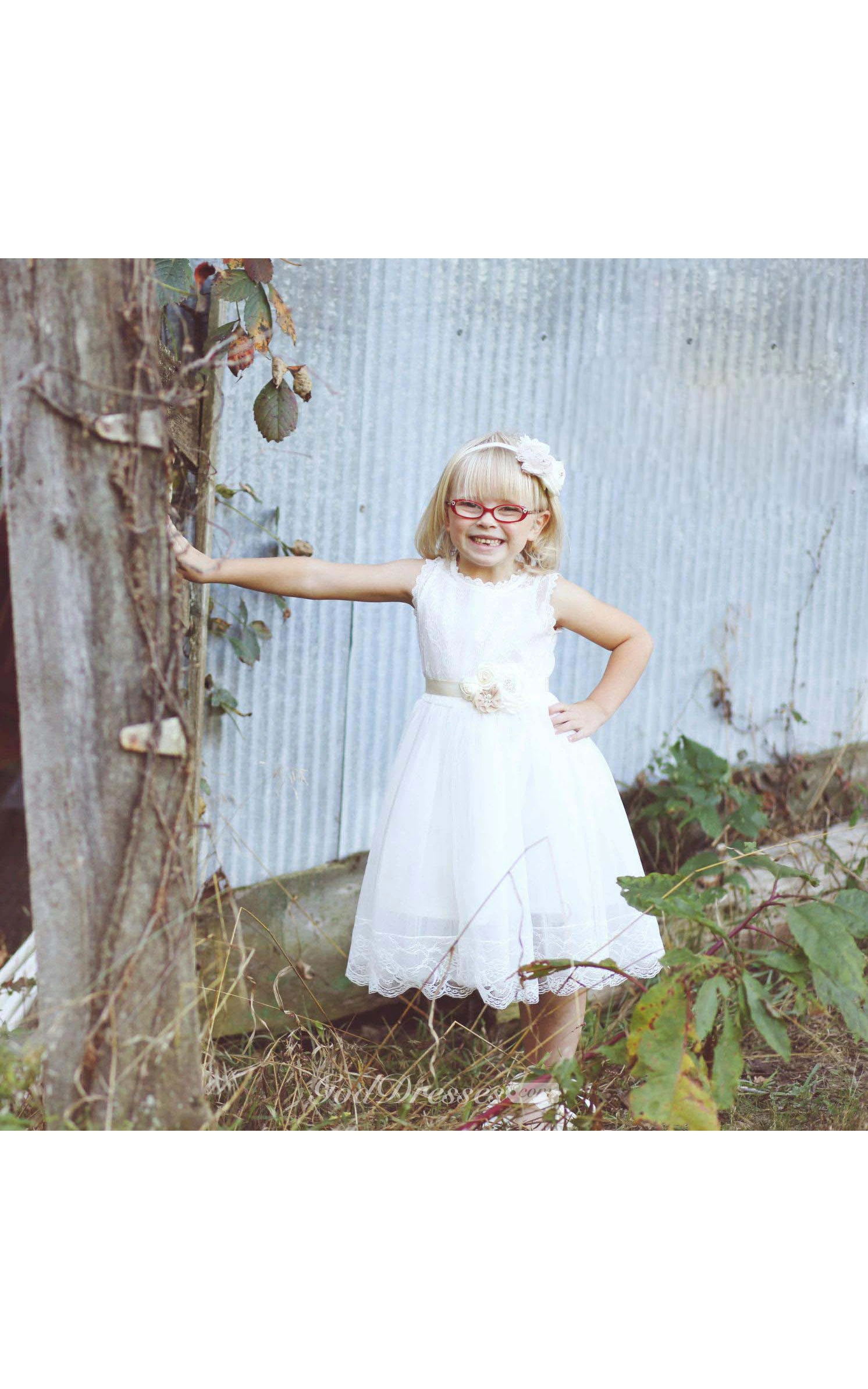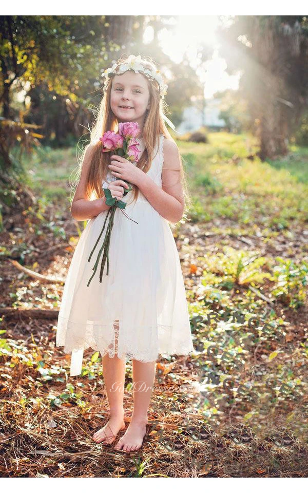 Flower Girl High Neck Sleeveless Ankle Length Lace Dress With Bow