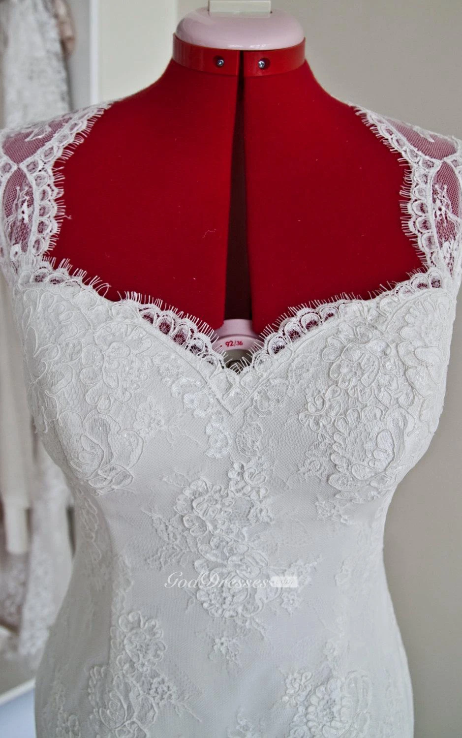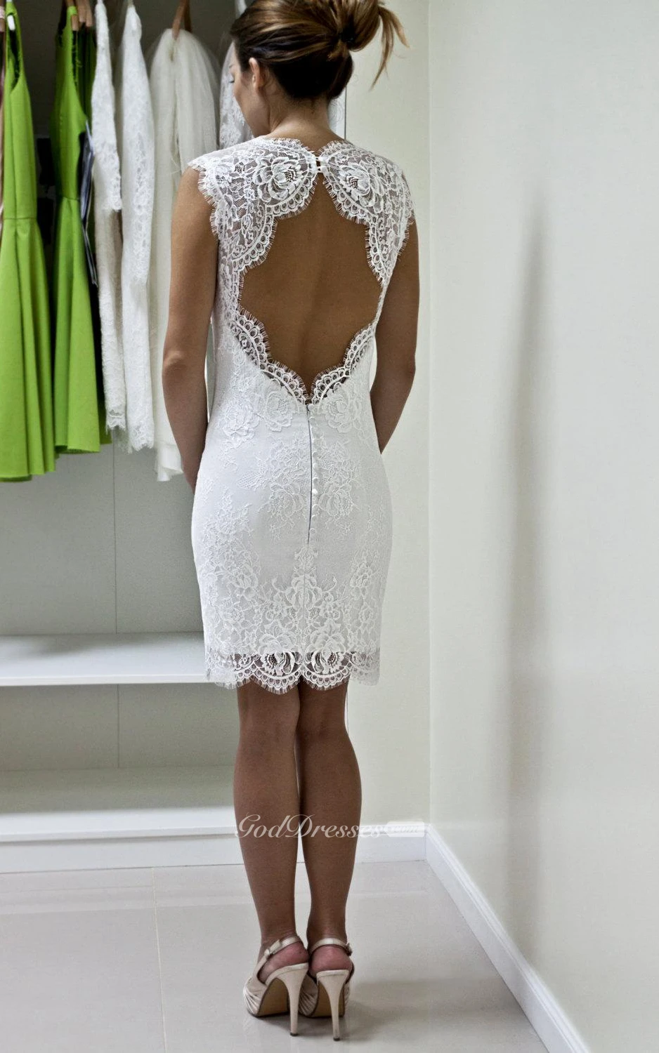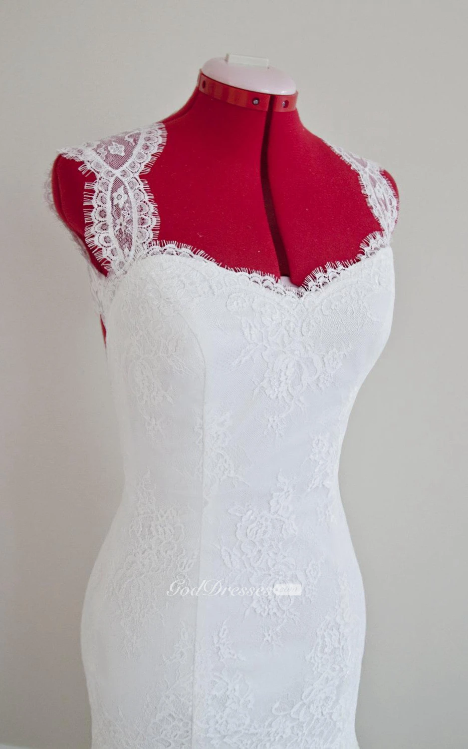 Form-Fitted Lace Sleeveless Dress With Queen Anne Neckline and Keyhole Back