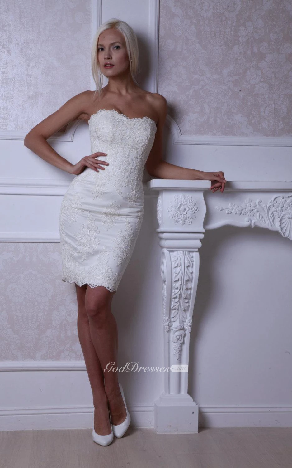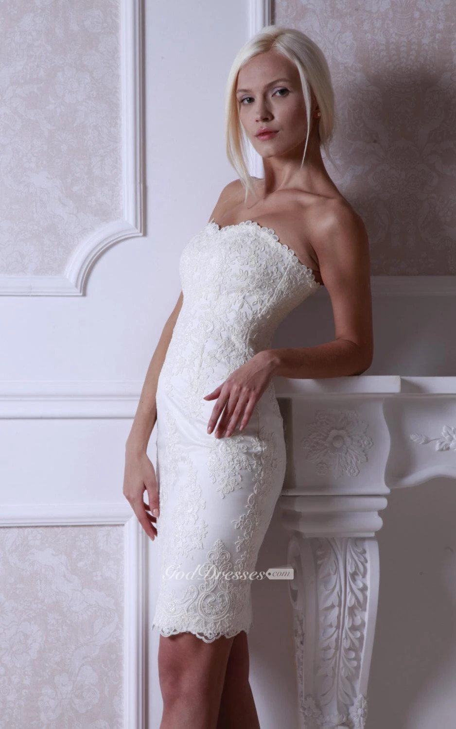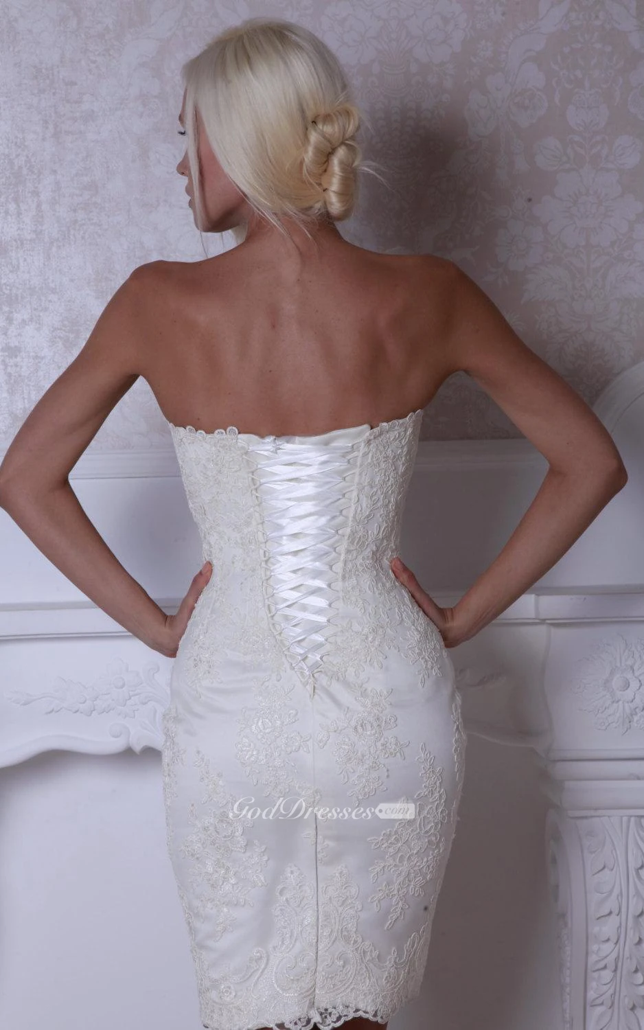 Form-Fitted Strapless Short Lace Dress With Lace-Up Back