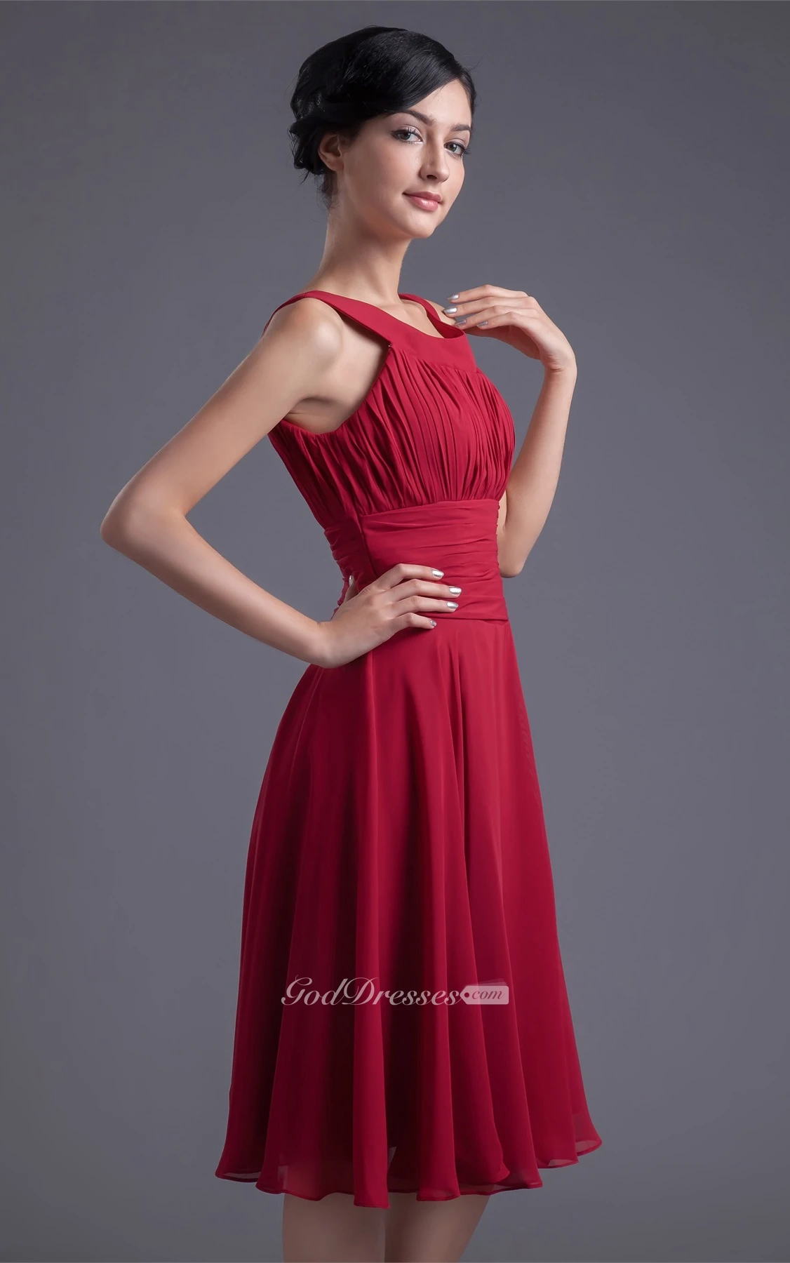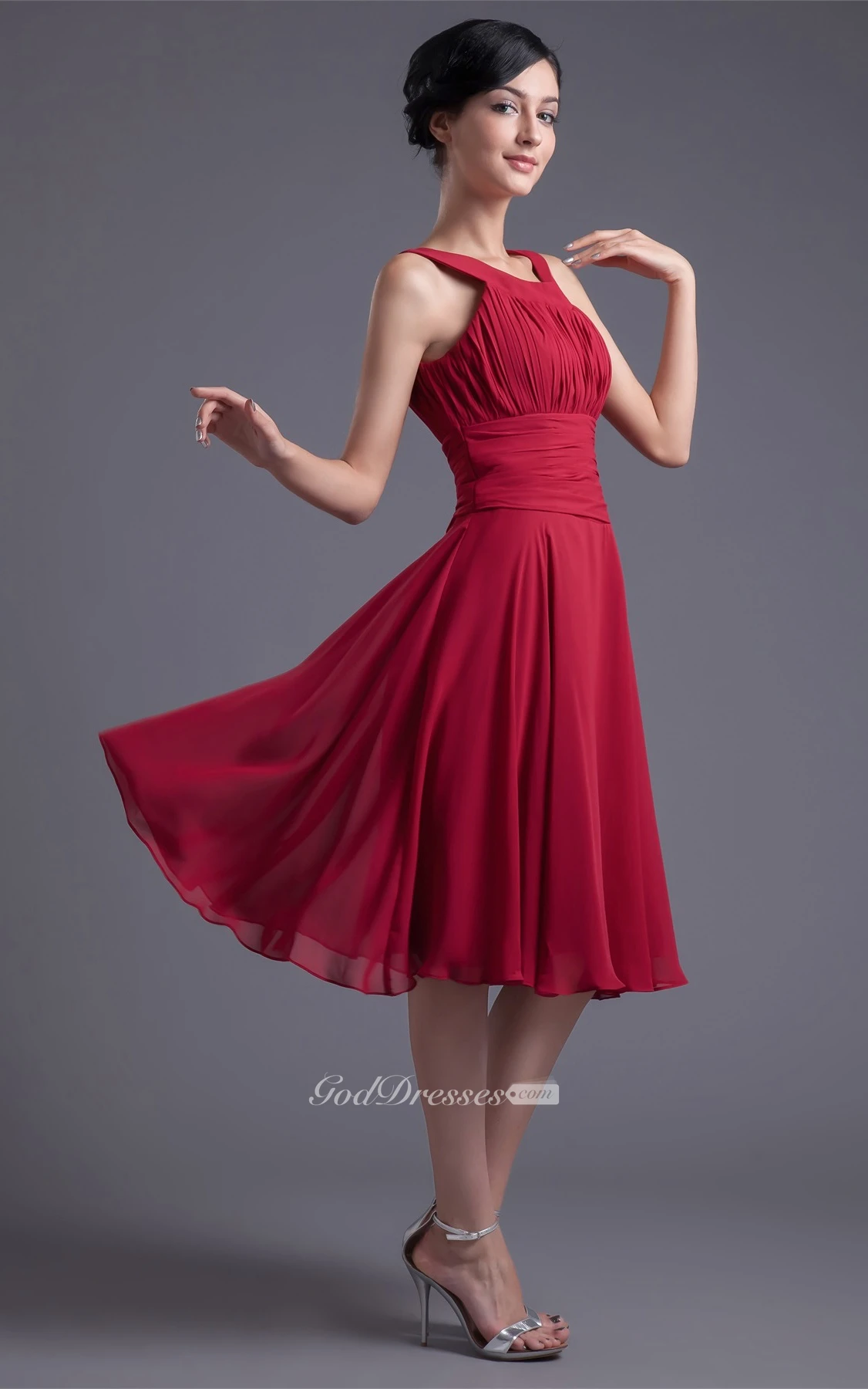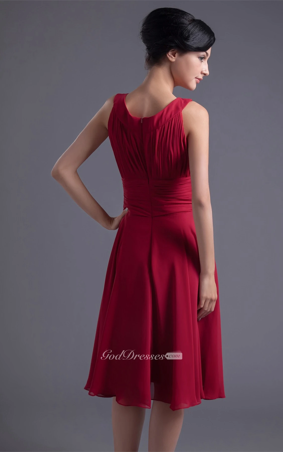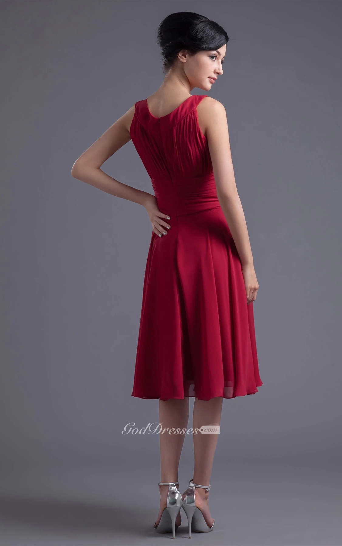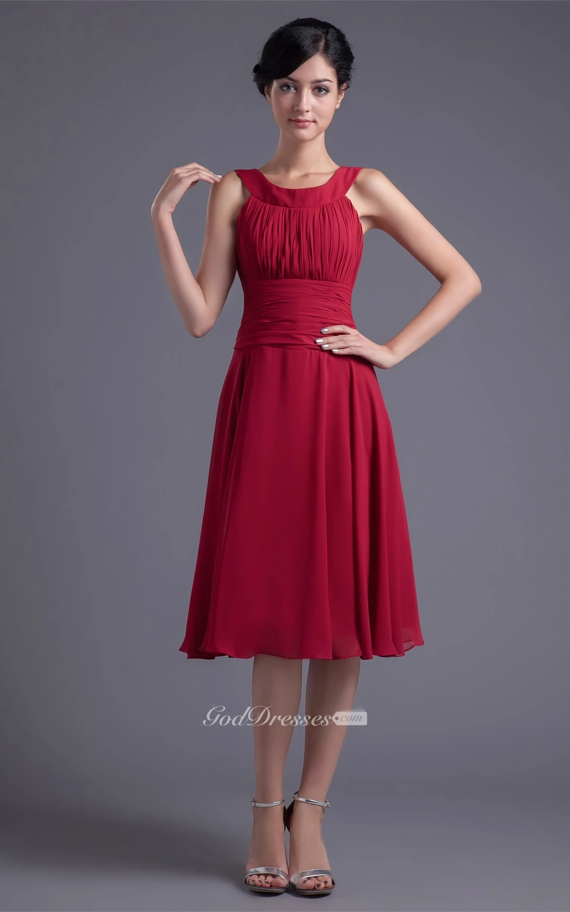 Glam Sleeveless Midi Scoop Neck Chiffon Satin Bridesmaid Dresses
