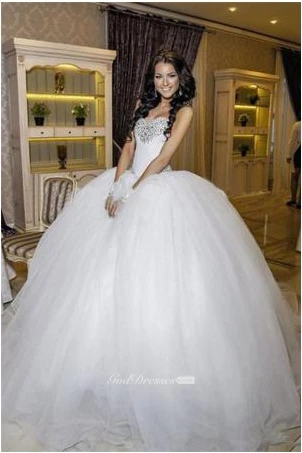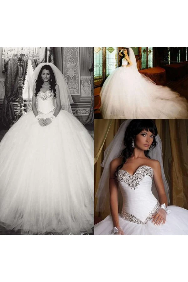 Glamorous Ball Gown Tulle Wedding Dress Crystals White Court Train