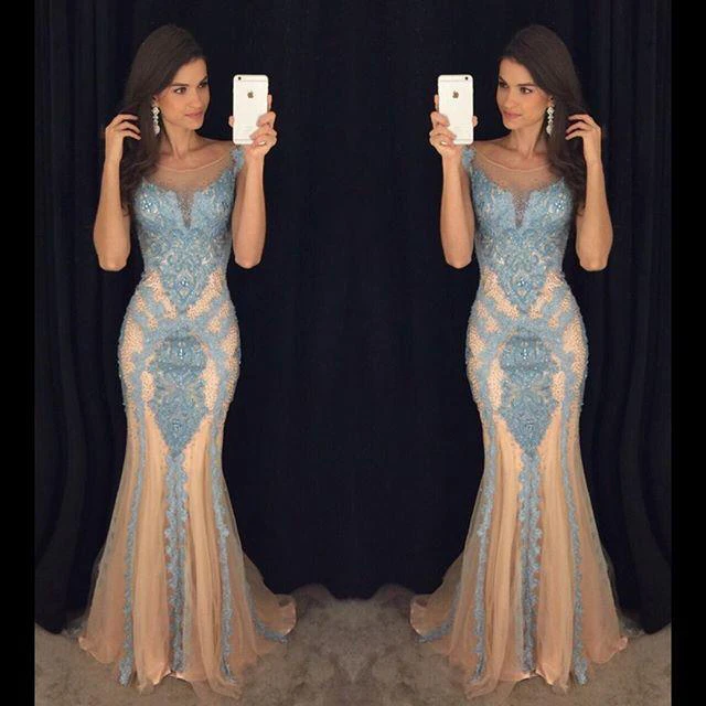 Glamorous Beadings Mermaid Prom Dress Open Back Sweep Train