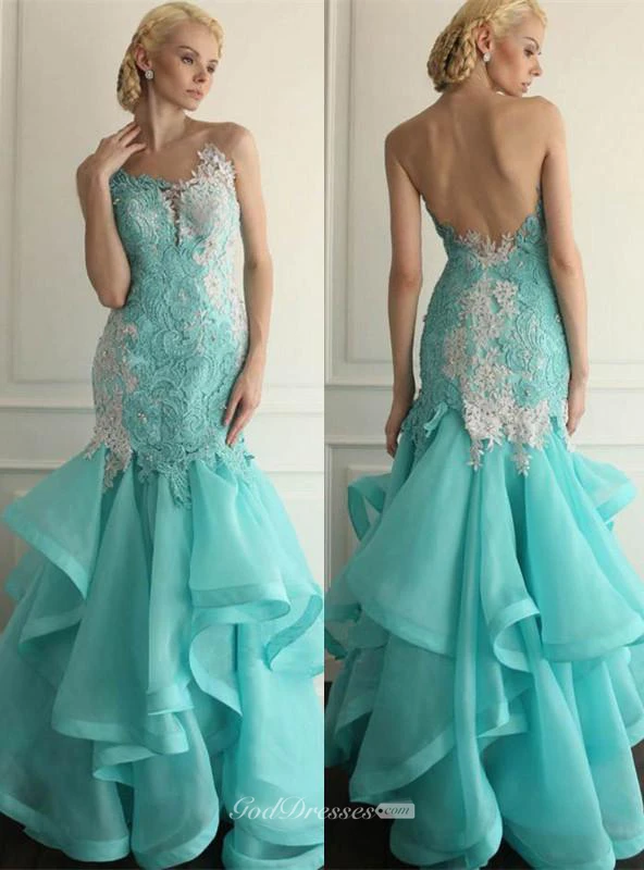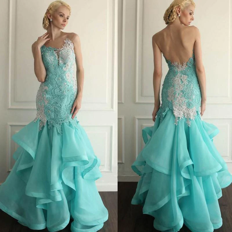 Glamorous Lace Appliques Prom Dresses Floor Length With Ruffles