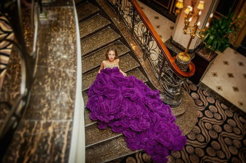 Glamorous Pregnant Purple Cloud Wedding Dress Appliques Women's Party Dress