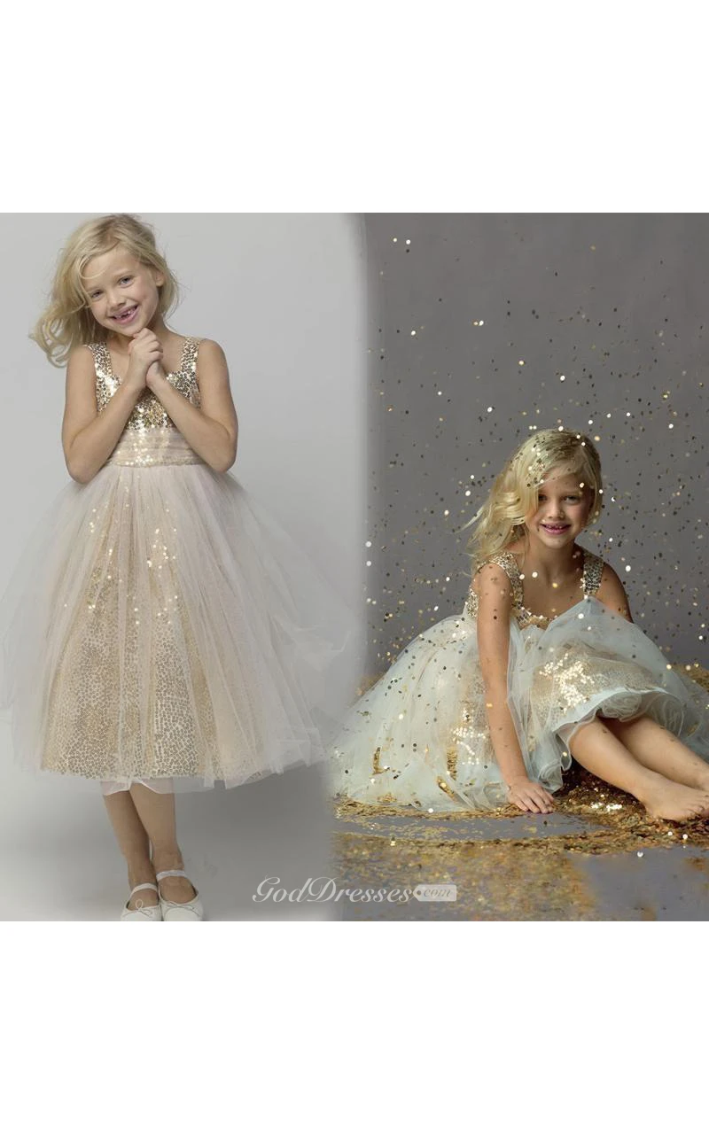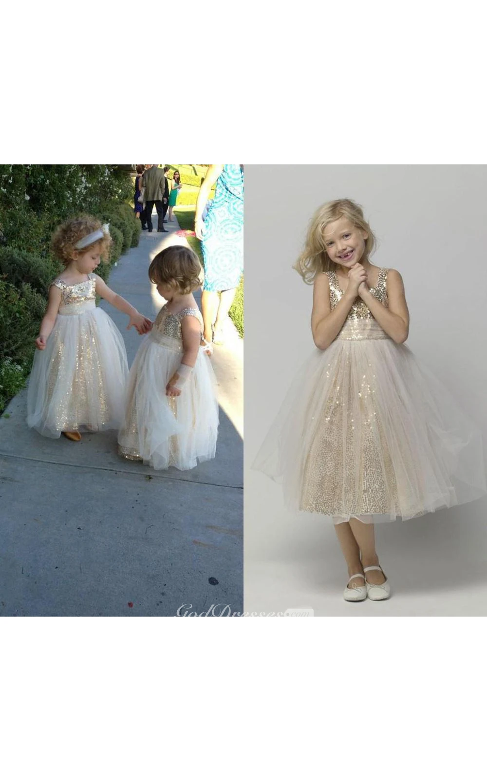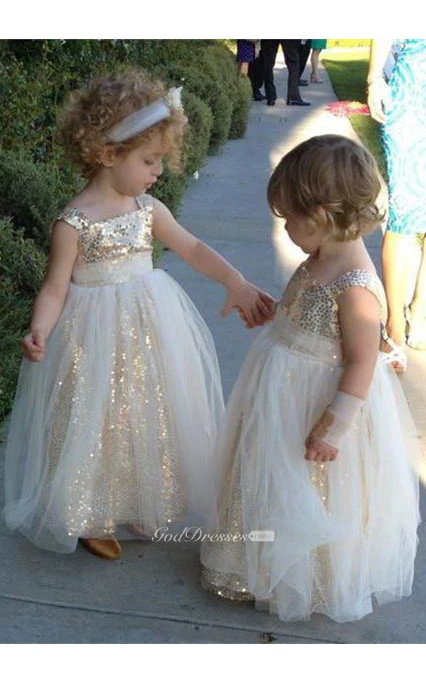 Glamorous Sequined Tulle A-line Flower Girl Dress Straps Sleeveless