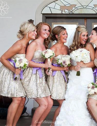 Glamorous Sleeveless Short Bridesmaid Dress Sweetheart Bowknot Sequins